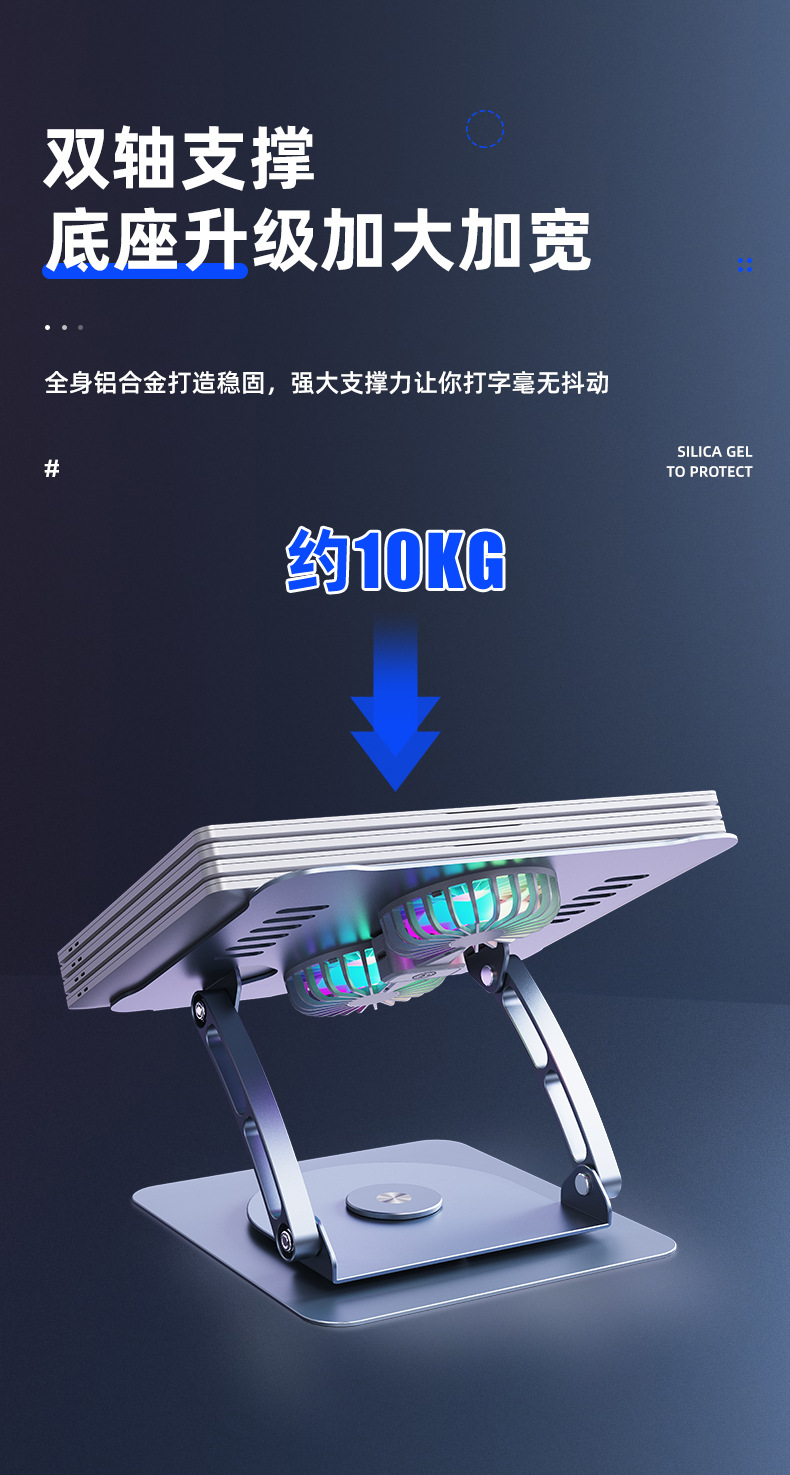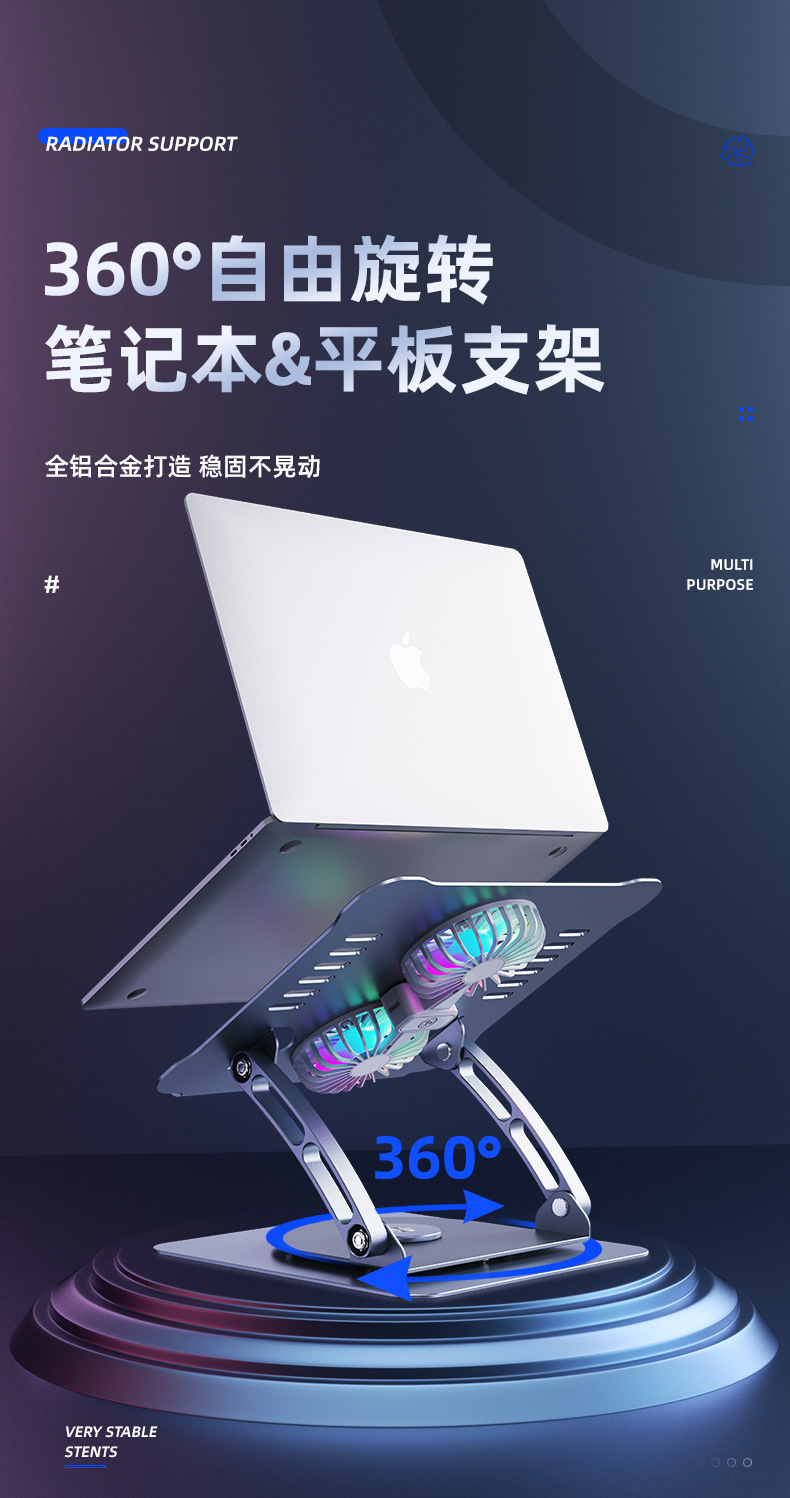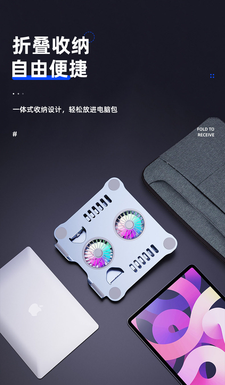 알루미늄 합금 노트북 리프팅 듀얼 팬 냉각 스탠드 태블릿 접이식 스탠드 라디에이터 게이밍 노트북
