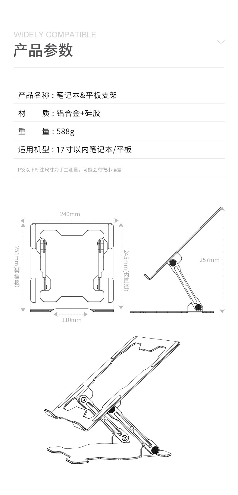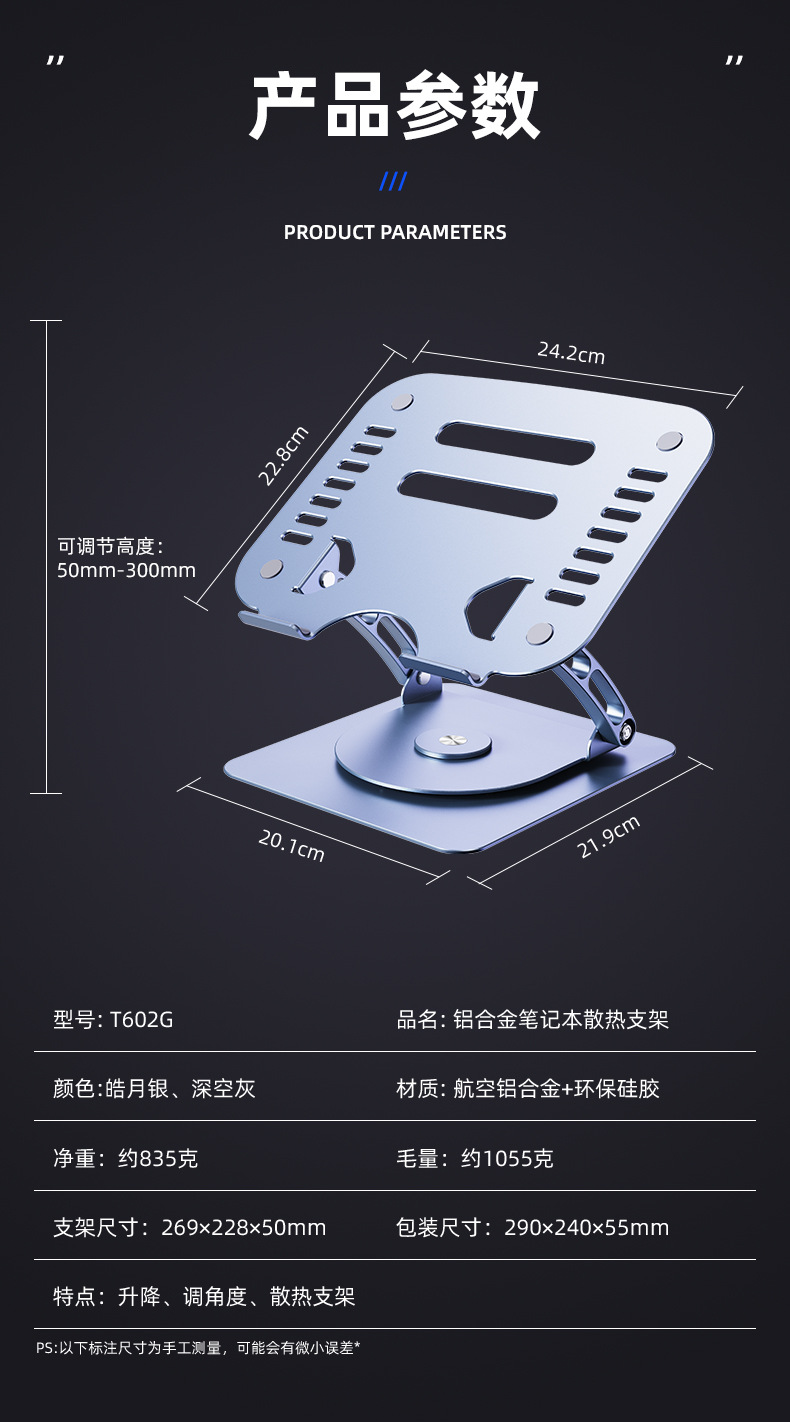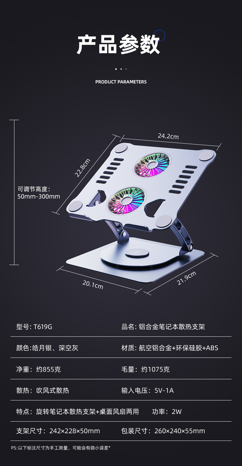 알루미늄 합금 노트북 리프팅 듀얼 팬 냉각 스탠드 태블릿 접이식 스탠드 라디에이터 게이밍 노트북