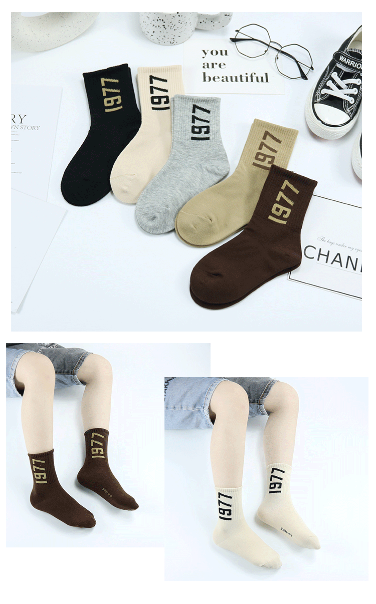 이순신 쌍 어린이 양말 가을과 겨울 새로운 두꺼운 한국 스타일 디지털 1977 양말 빗질면 남성 및 여성 스포츠 양말스토어 가기