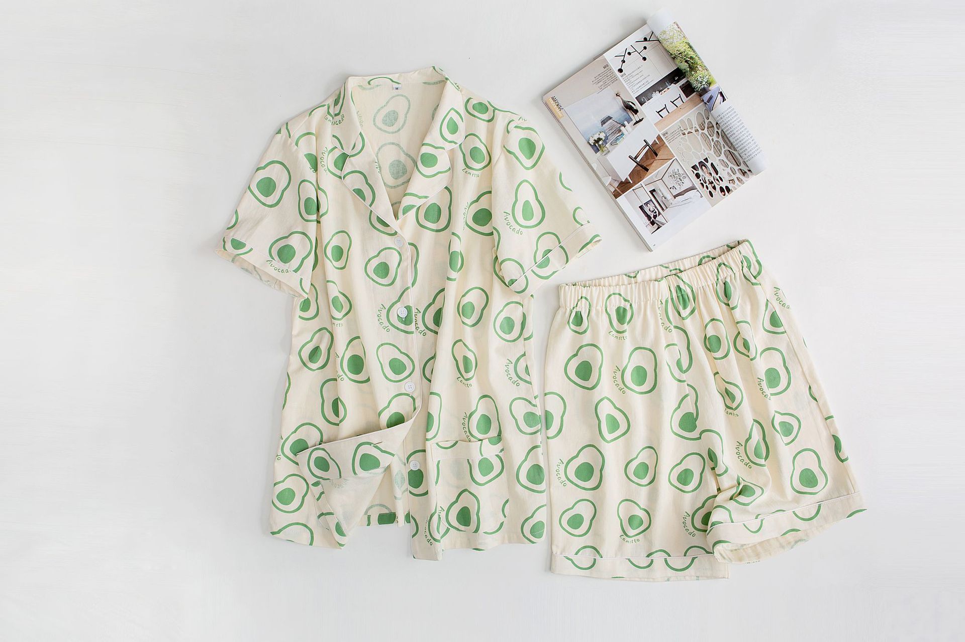 새로운 여름 홈웨어 성인 잠옷 세트 부모-자식 의류 코튼 인 스타일 반팔 반바지 세트 가디건