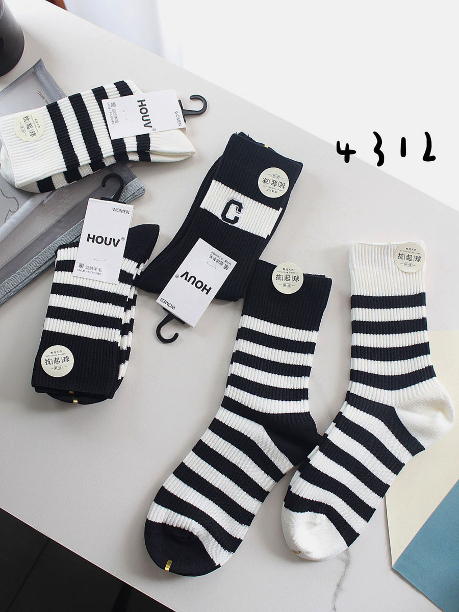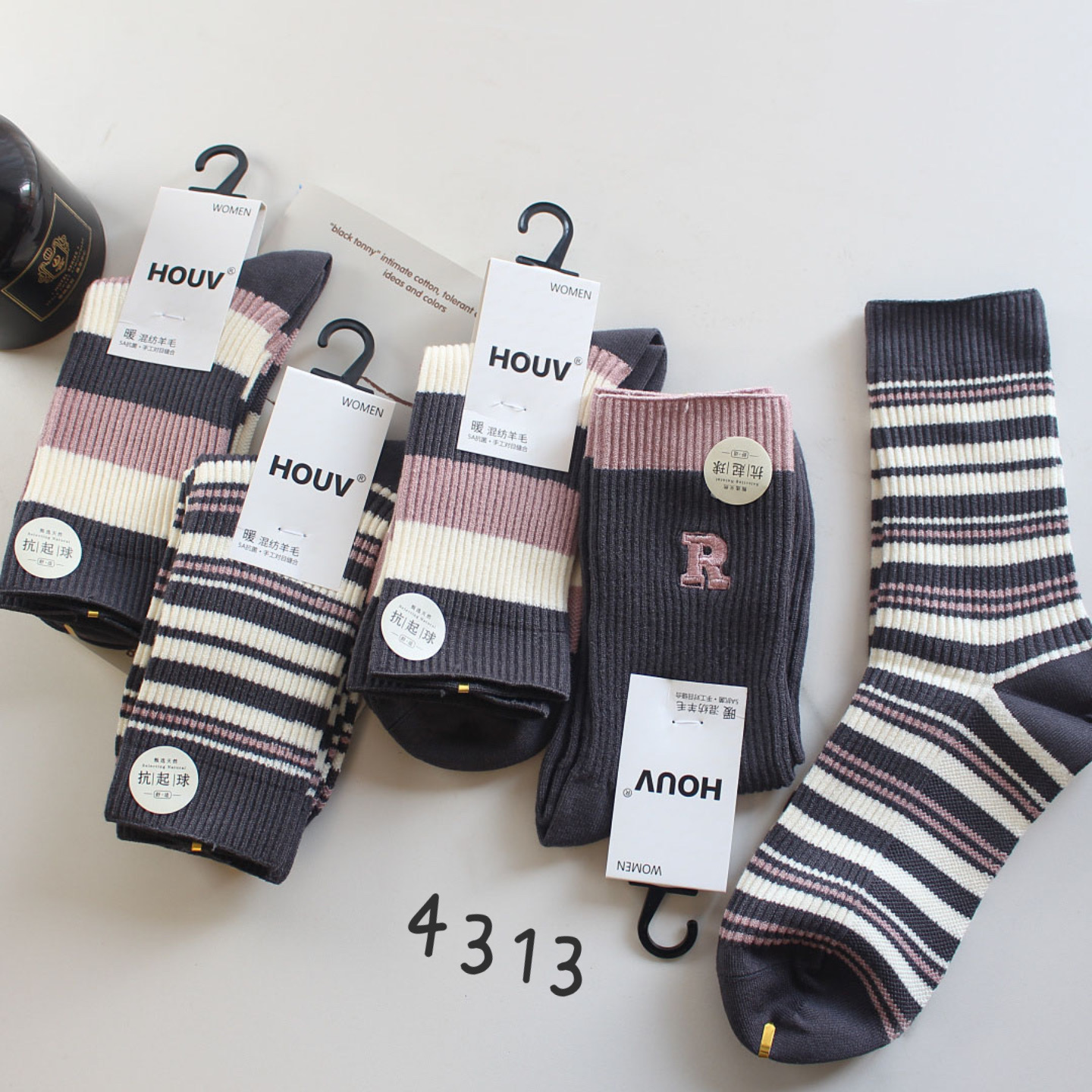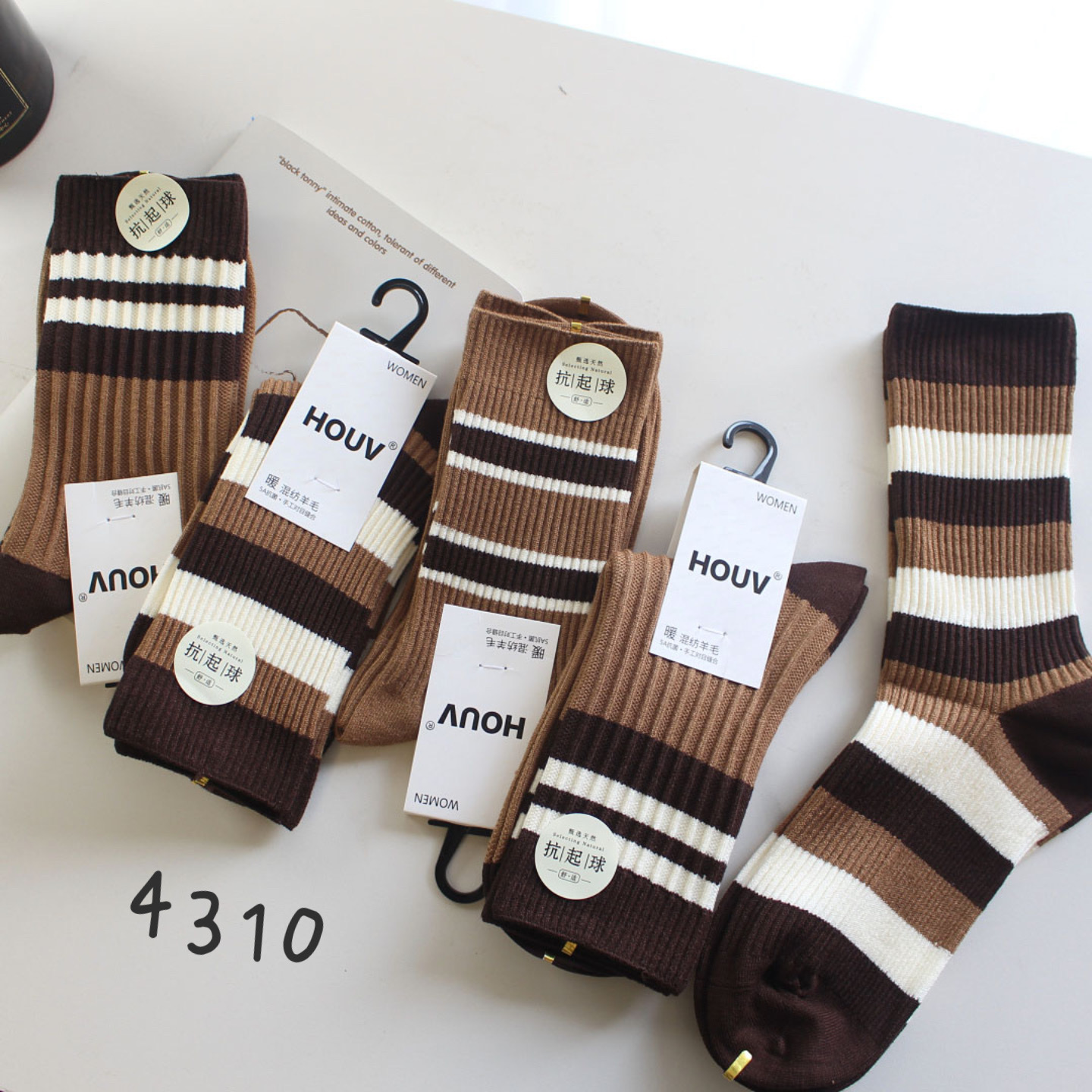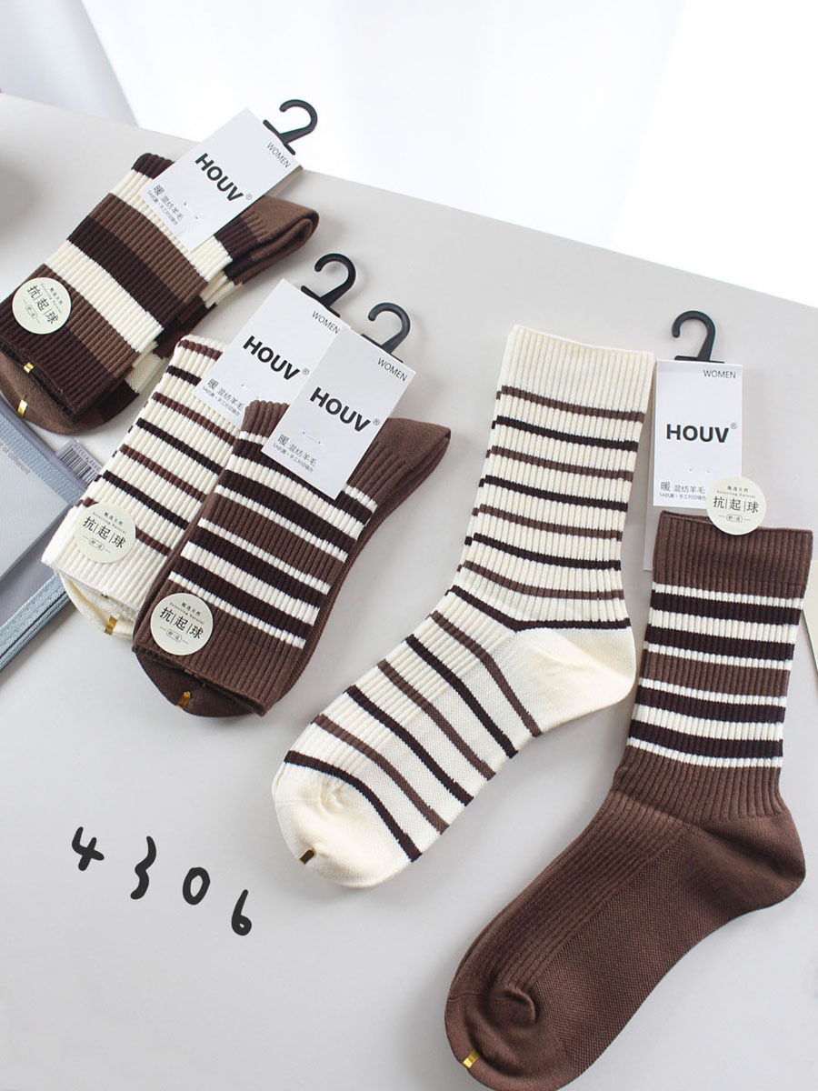 HOUV 초극세 양모 여성 양말 2025 겨울 보풀 방지 메일라드 스타일 스트라이프 중목 양말 43 시리즈스토어 가기