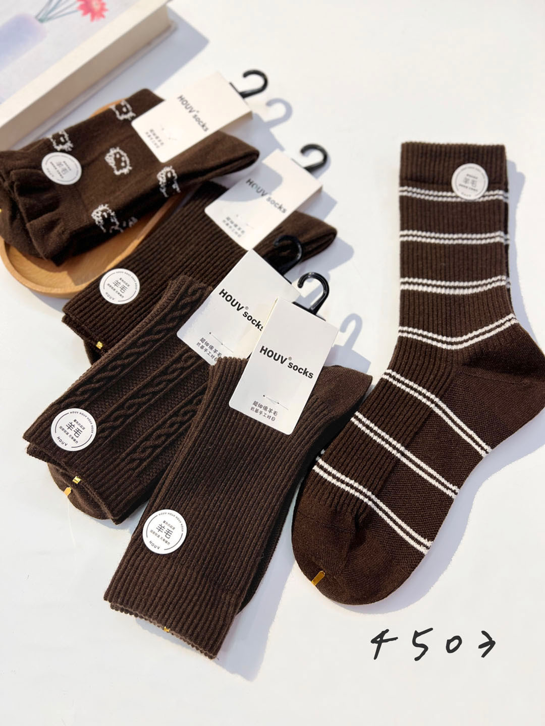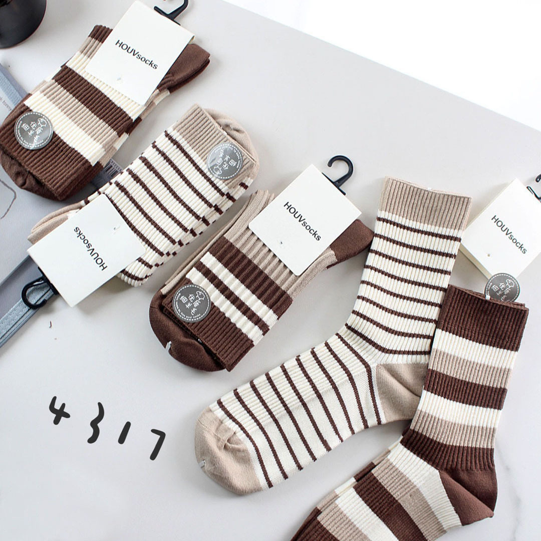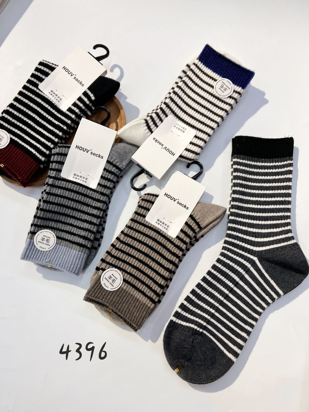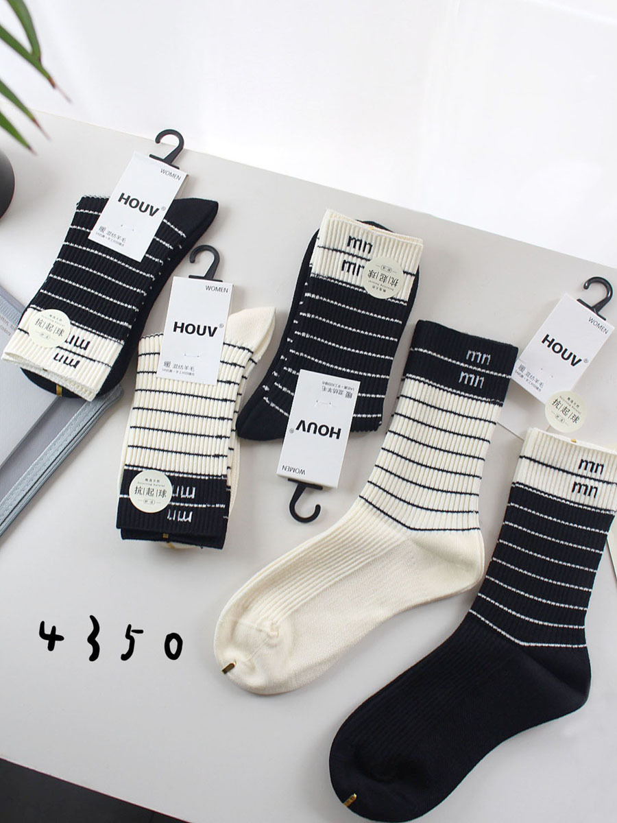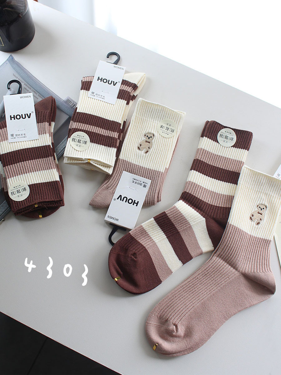 HOUV 초극세 양모 여성 양말 2025 겨울 보풀 방지 메일라드 스타일 스트라이프 중목 양말 43 시리즈스토어 가기