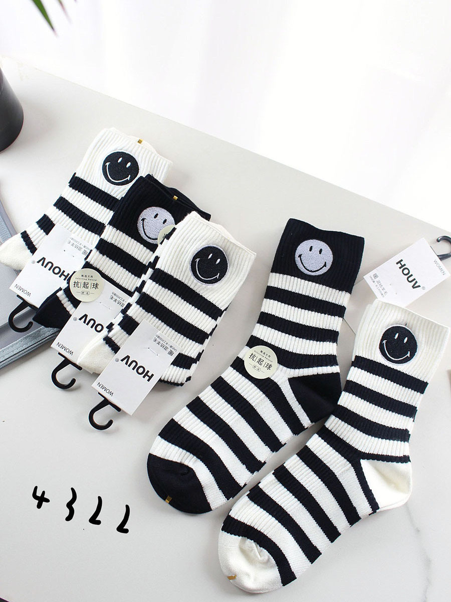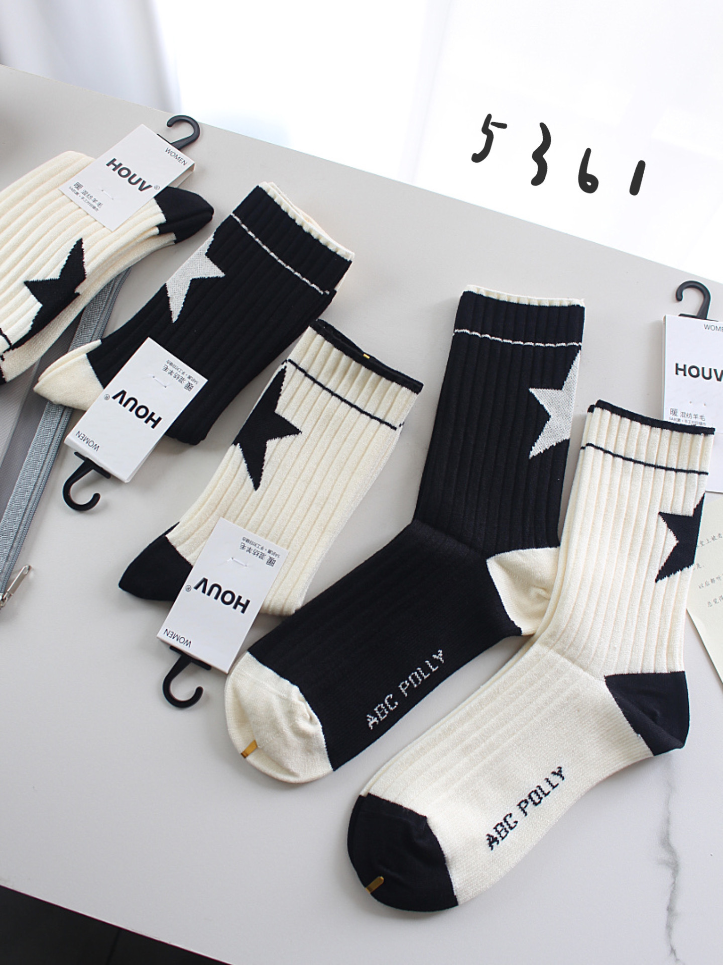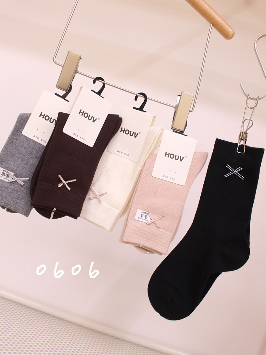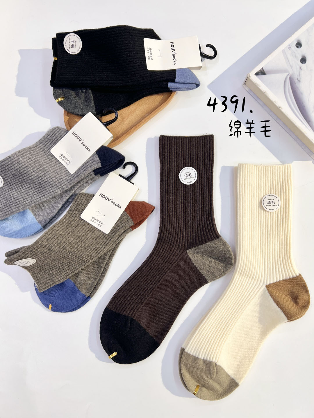 HOUV 초극세 양모 여성 양말 2025 겨울 보풀 방지 메일라드 스타일 스트라이프 중목 양말 43 시리즈스토어 가기