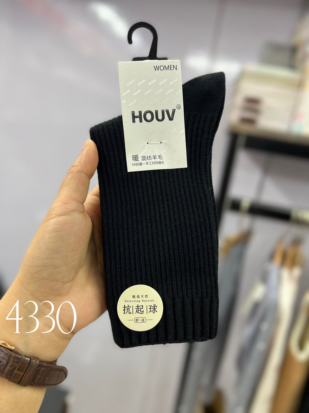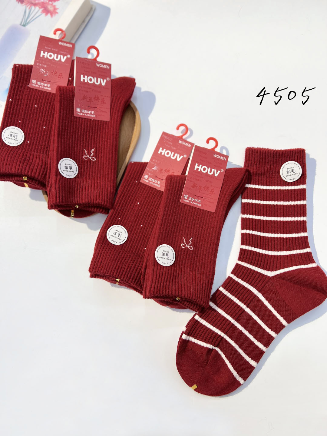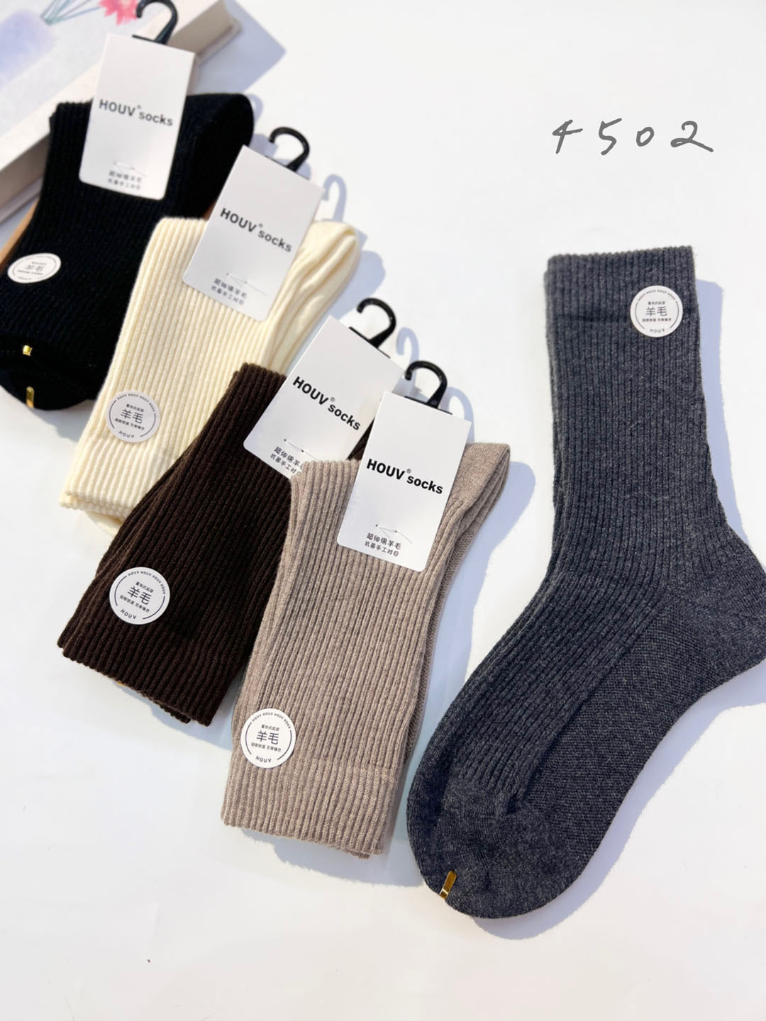 HOUV 초극세 양모 여성 양말 2025 겨울 보풀 방지 메일라드 스타일 스트라이프 중목 양말 43 시리즈