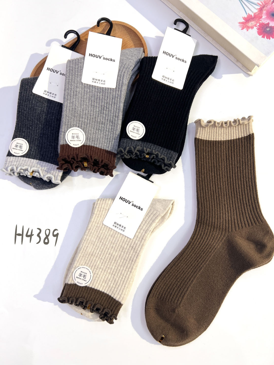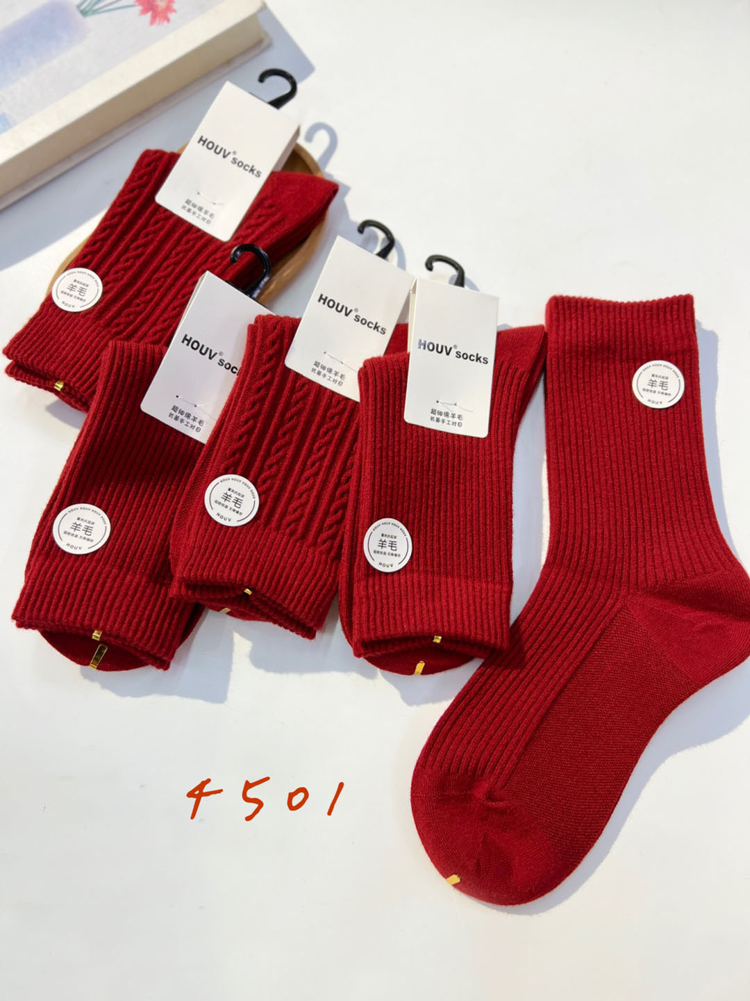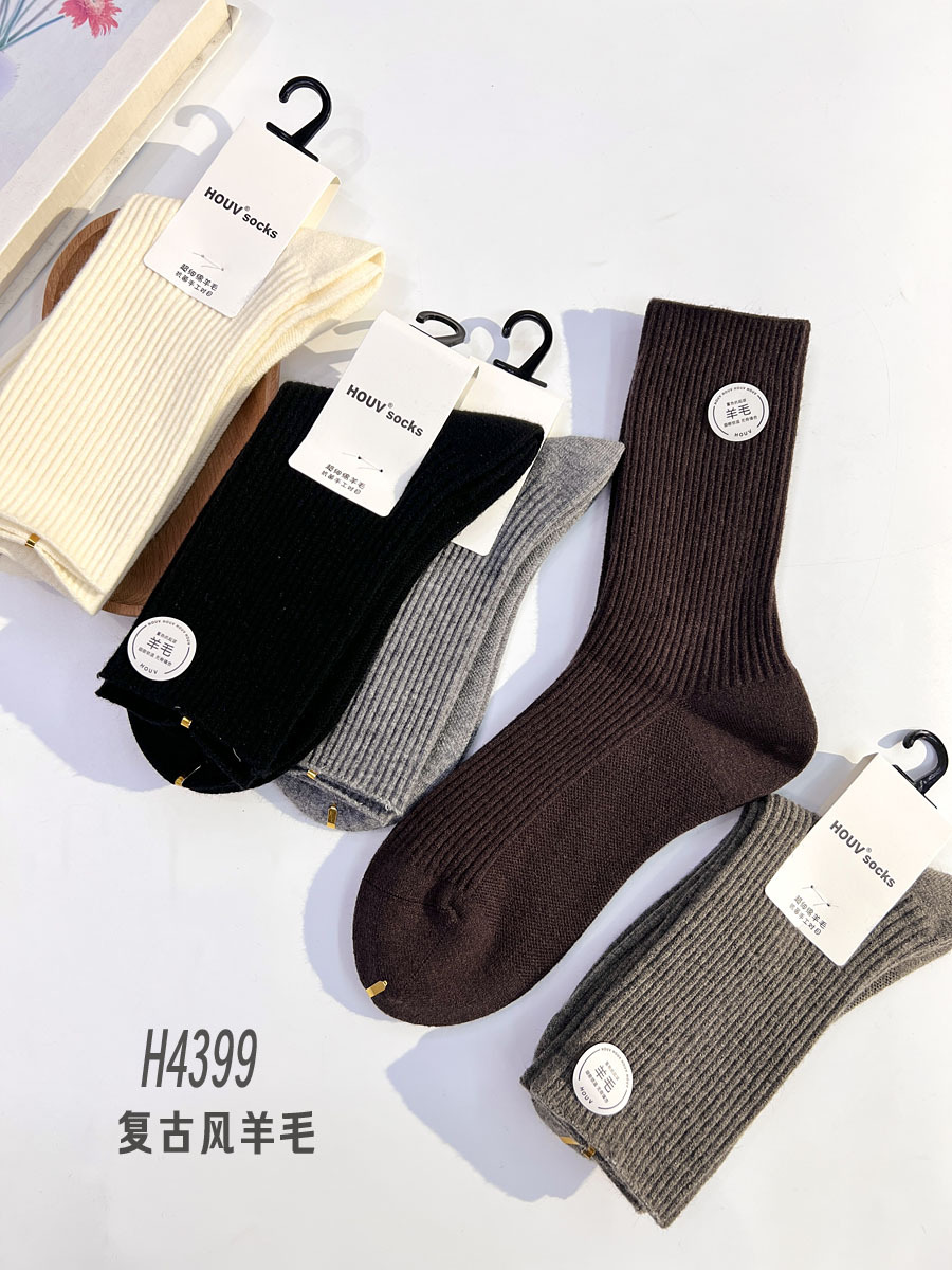 HOUV 초극세 양모 여성 양말 2025 겨울 보풀 방지 메일라드 스타일 스트라이프 중목 양말 43 시리즈