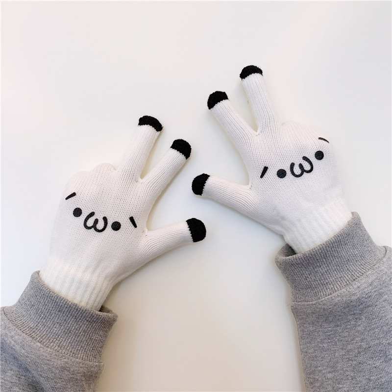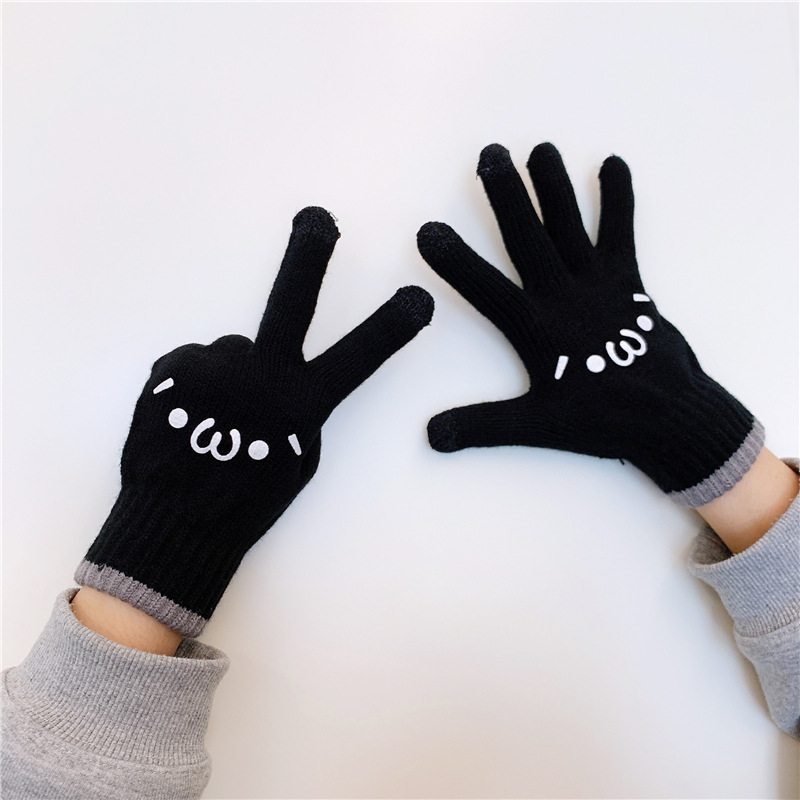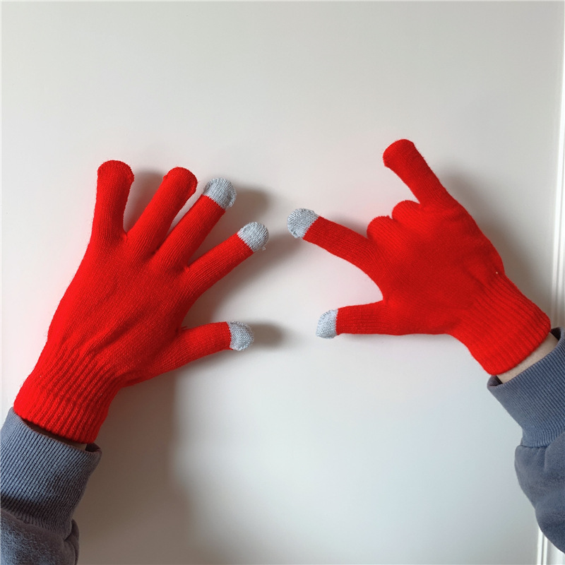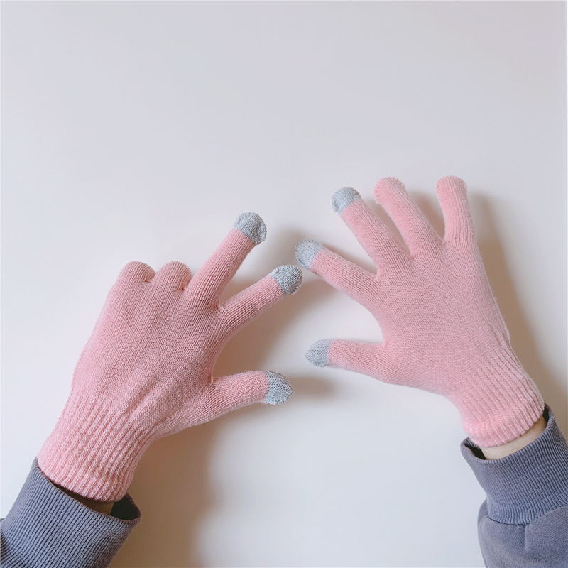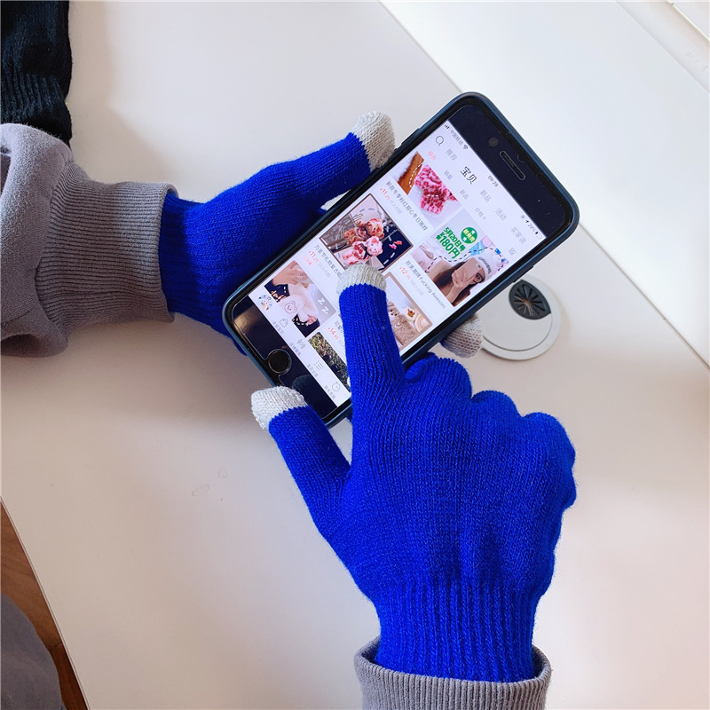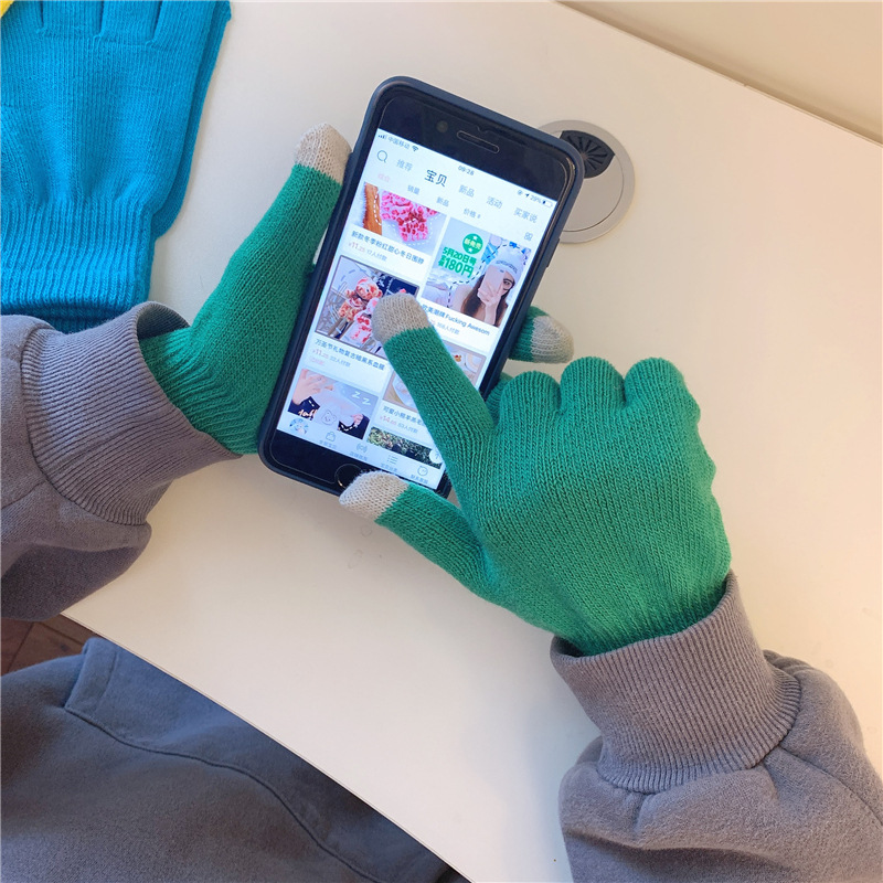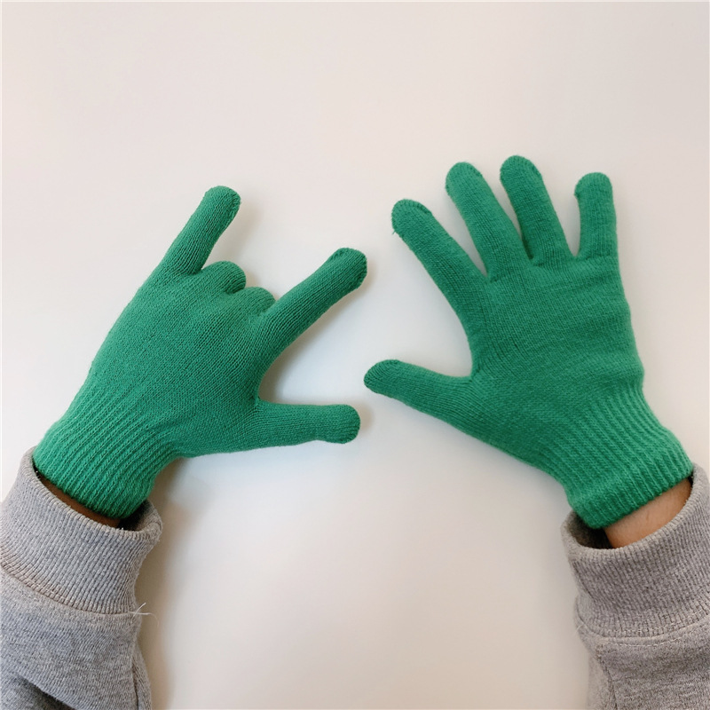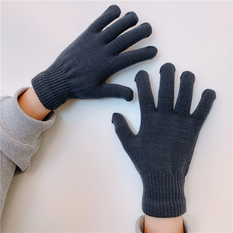 수제 한 쌍의 in 스타일 다목적 단색 장갑 여성의 겨울 한국 스타일 기모 따뜻한 귀여운 손가락 장갑 남성스토어 가기