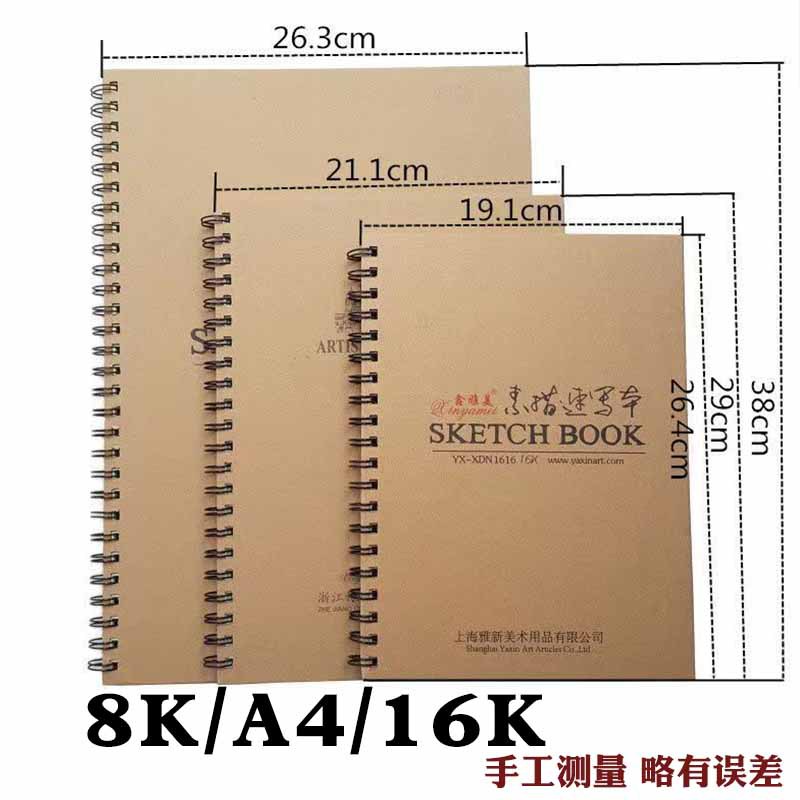 Xin Yamei A4/16K/8K 스케치 북 160g 두꺼운 종이 소가죽 단단한 표면 아트 스케치 북스토어 가기
