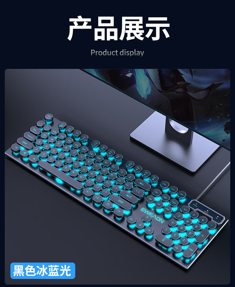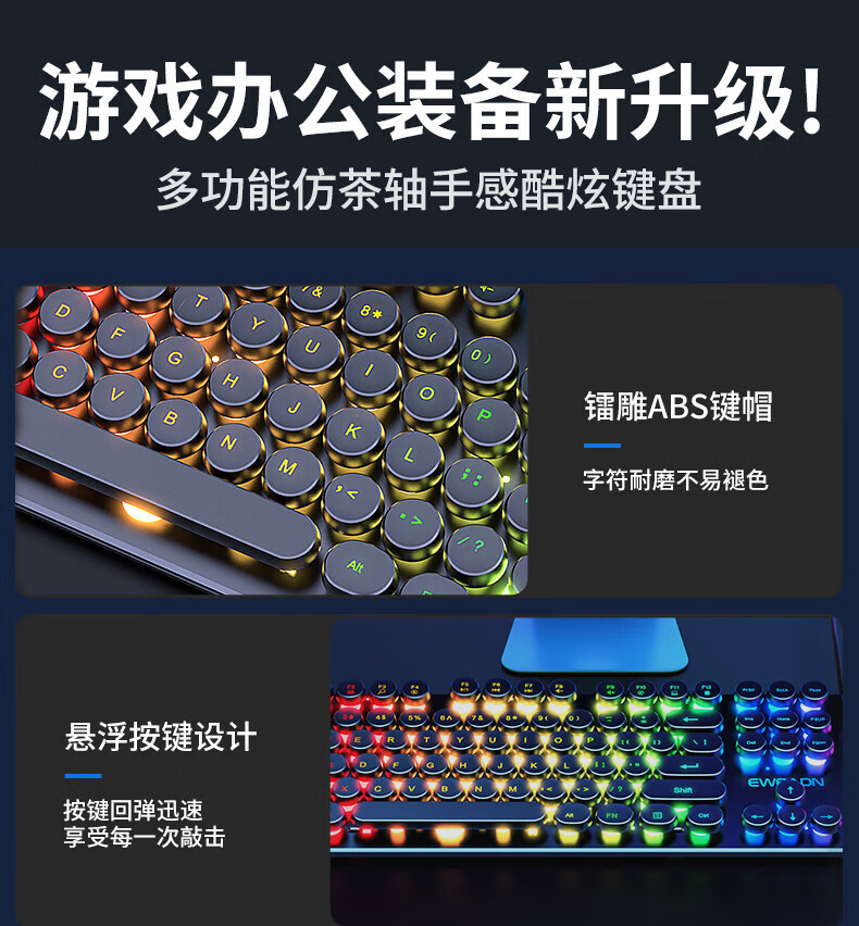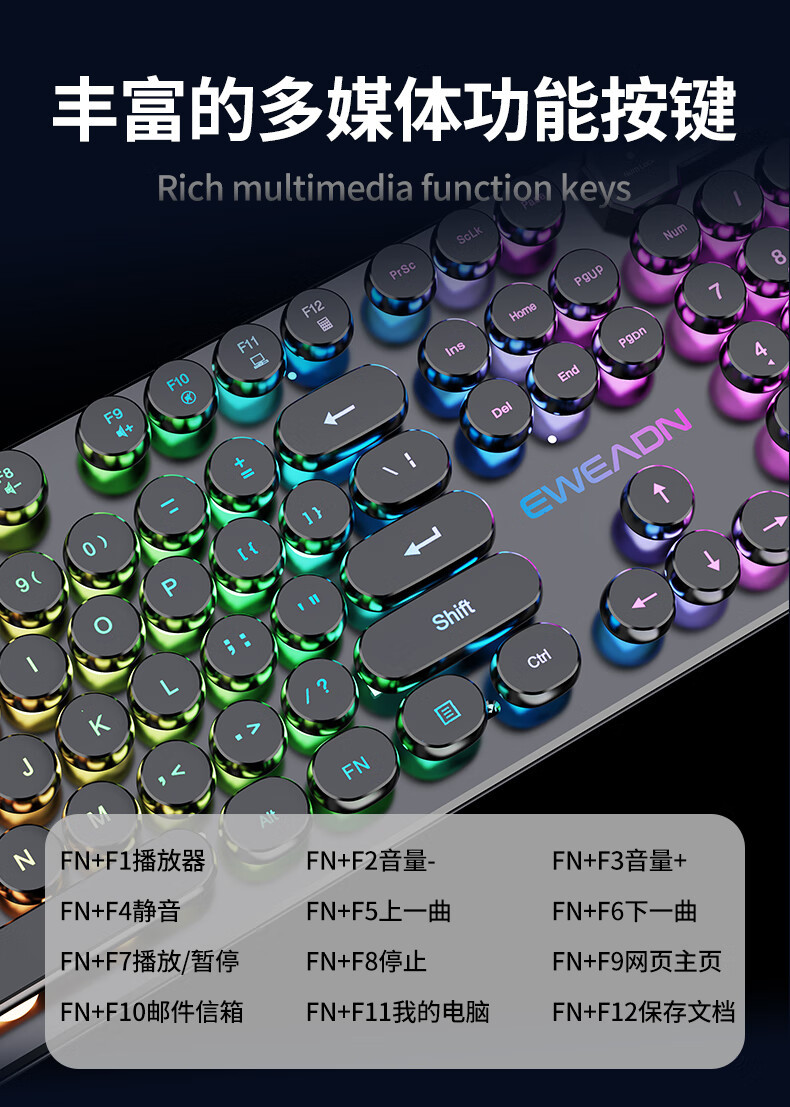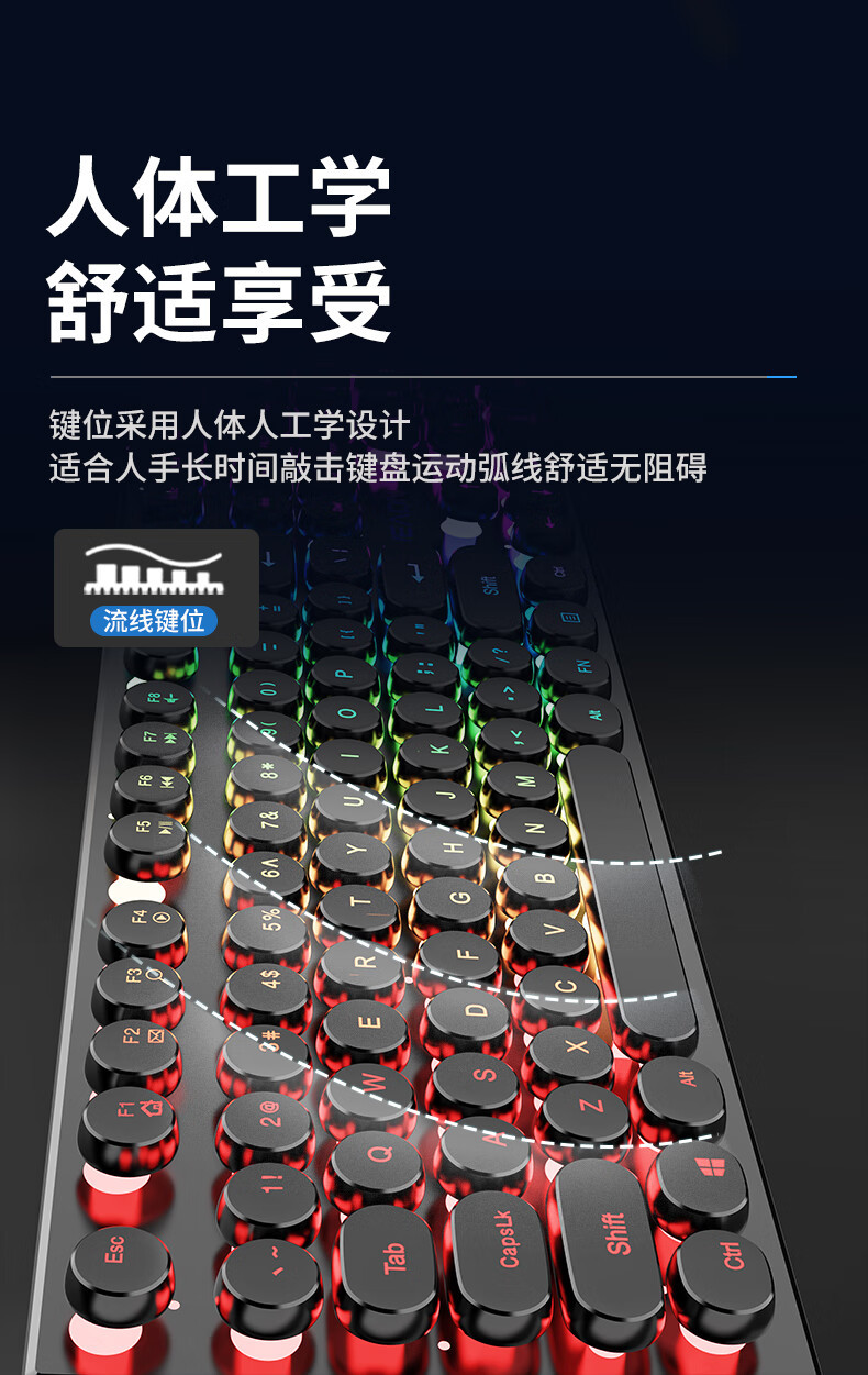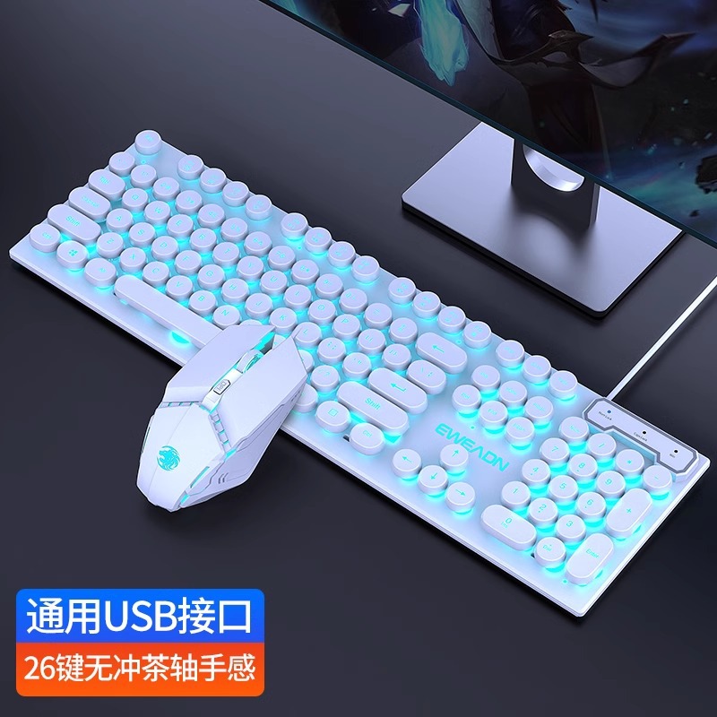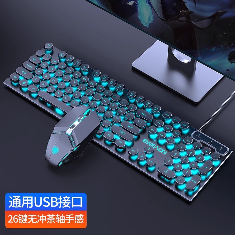 진짜 기계 느낌 펑크 키보드 및 마우스 세트 복고풍 라운드 키 유선 데스크탑 컴퓨터 노트북 사무실스토어 가기