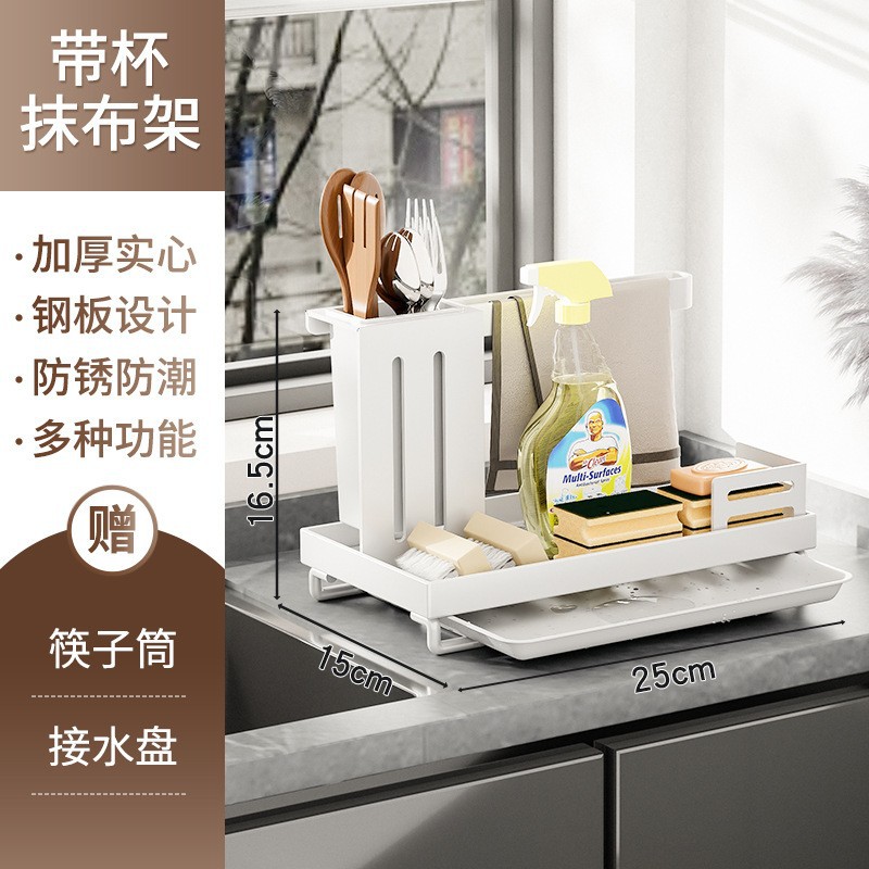 게으른 사람들을위한 주방 수건 걸레 랙 걸레 배수 랙 천공되지 않은 벽걸이 식기류 보관 랙