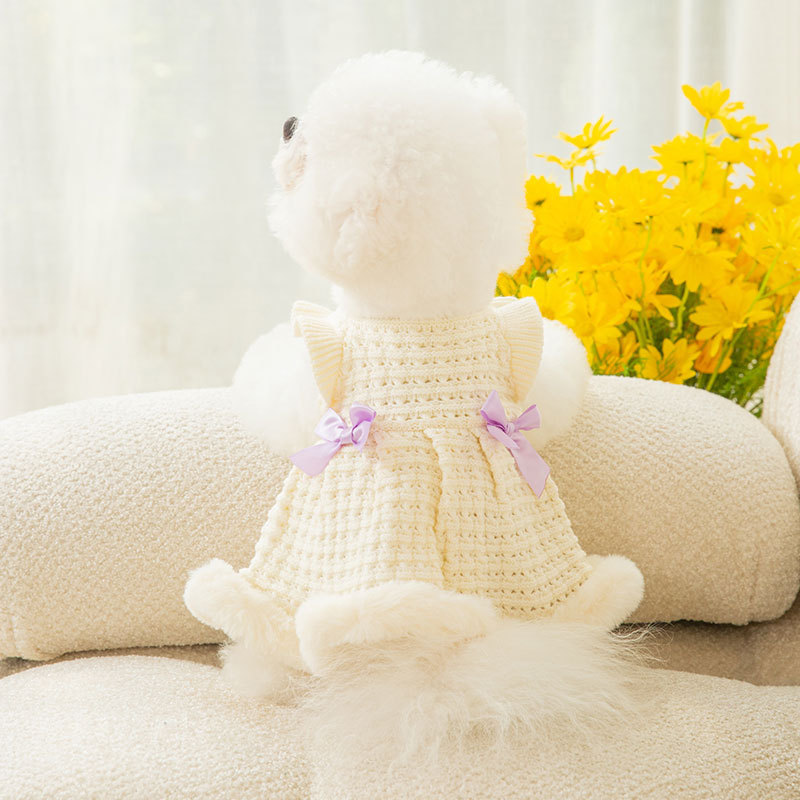 가을과 겨울 따뜻한 두꺼운 개 옷 Bowknot 스웨터 스커트 공주 스타일 고양이 애완 동물 테디 두 다리 옷스토어 가기