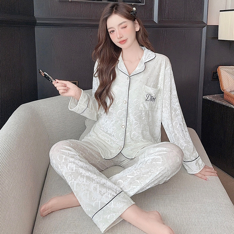 라이브 인터넷 연예인 패션 골드 벨벳 가을과 겨울 긴 소매 가벼운 럭셔리 잠옷 여자의 카디건 가정 의류 세트 공장 도매스토어 가기