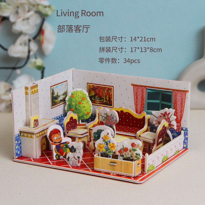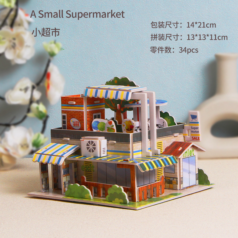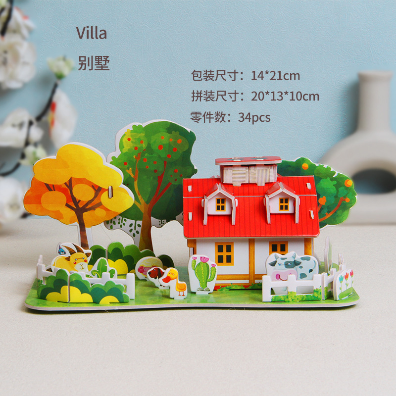 종이 3d 입체 퍼즐 교육 학교 모델 diy 수제 어린이 교육 장난감 소녀 유치원 도매스토어 가기