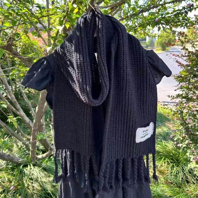 가을과 겨울 인터넷 연예인 모든 일치 일본과 한국 스타일 달콤한 작은 브레이드 술 단색 울 스카프 따뜻한 두꺼운 니트 스카프