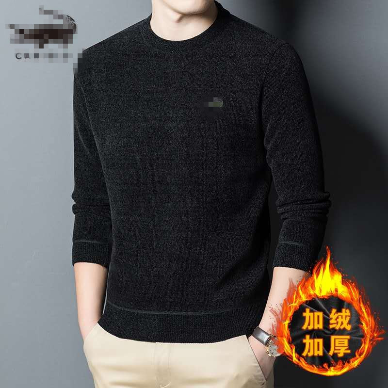 2025 신형 셔닐 보온 스웨터 젊은 남성용 플리스 안감 두꺼운 겨울 니트 스웨터 남성용 라운드넥 이너웨어스토어 가기