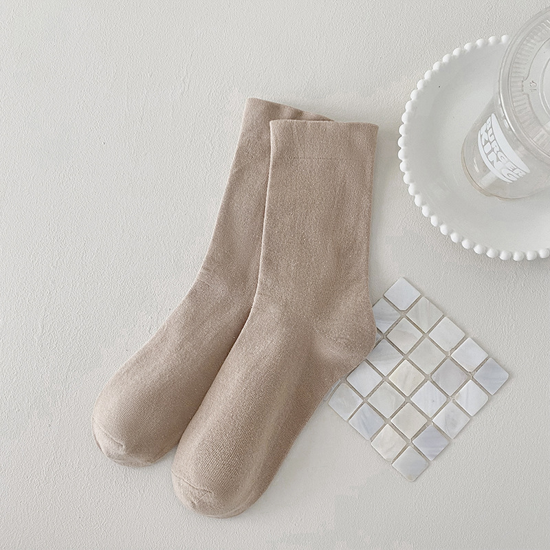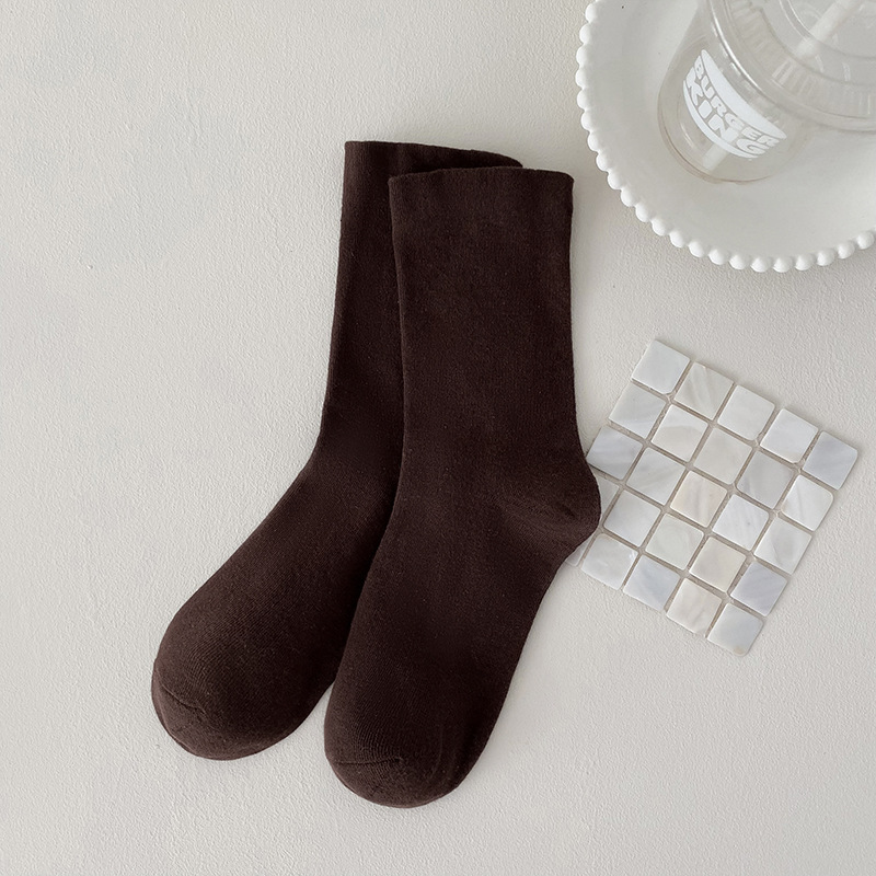 다크 브라운 양말 여성의면 일본식 다용도 단색 양말 에 유행 뼈없는 아기 양말 여성용 중간 튜브 양말 도매