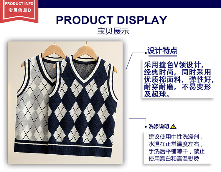 어린이 니트 조끼 초등 및 중등 학생 유치원 가을과 겨울 유니폼 조끼 영국 아카데미 스타일 스웨터 조끼 조수