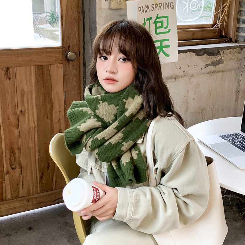 가을과 겨울 새로운 네잎 클로버 니트 울 스카프 긴 따뜻한 목 보호 패션 목도리 학생 커플 올매치 조수스토어 가기