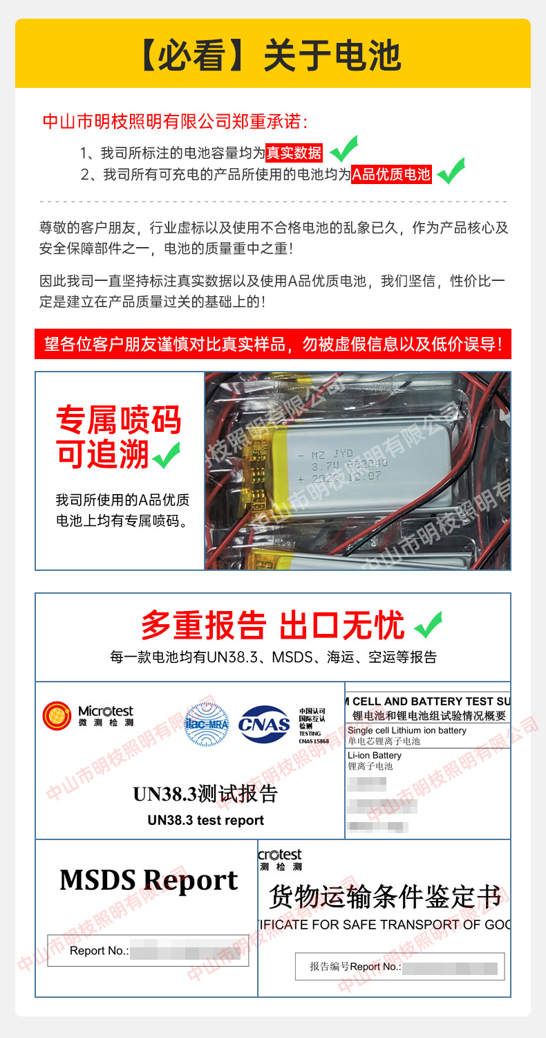 ·检测报告:UN38.3(电池)/MSDS(电池)