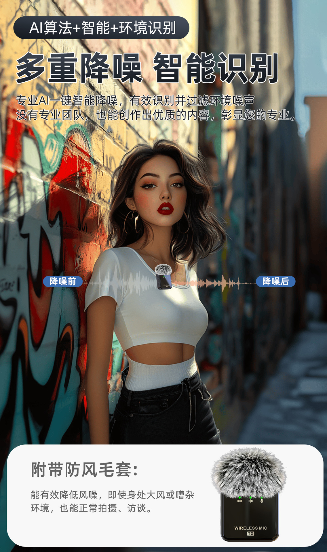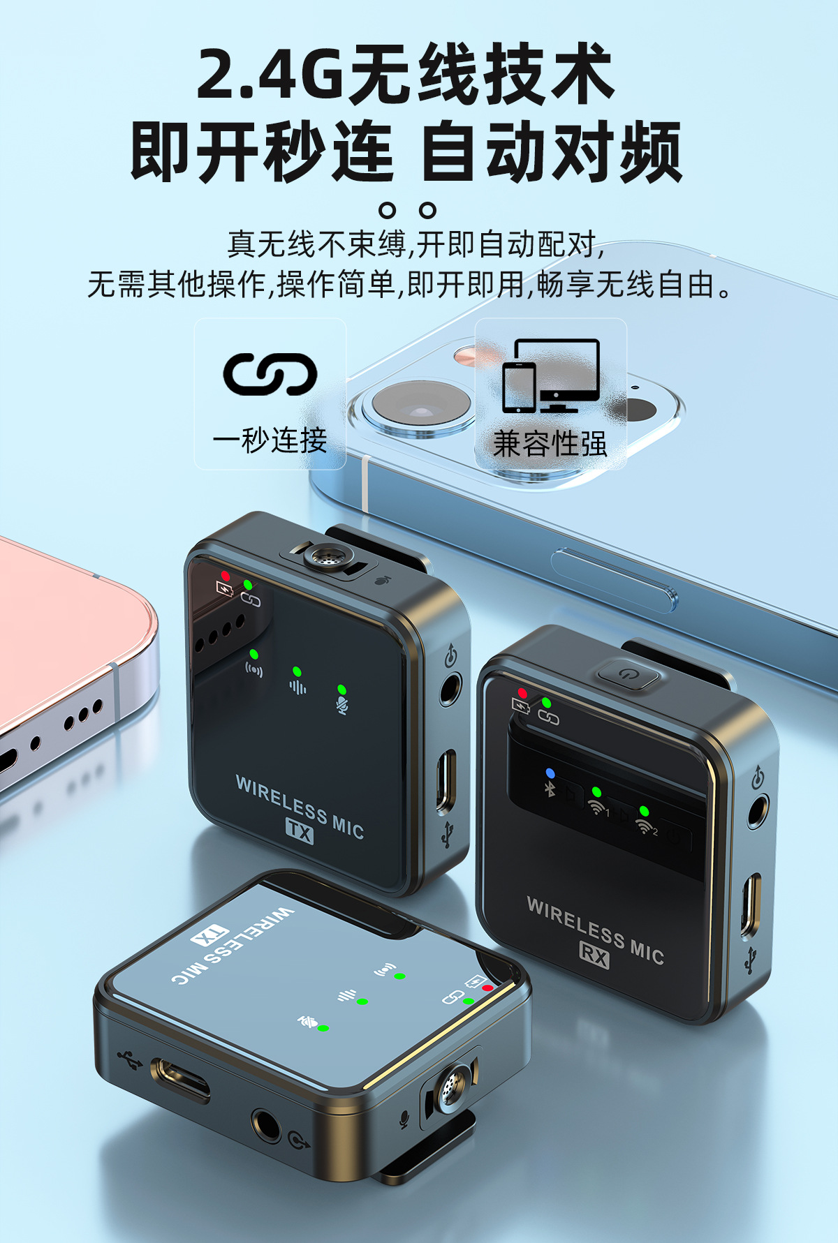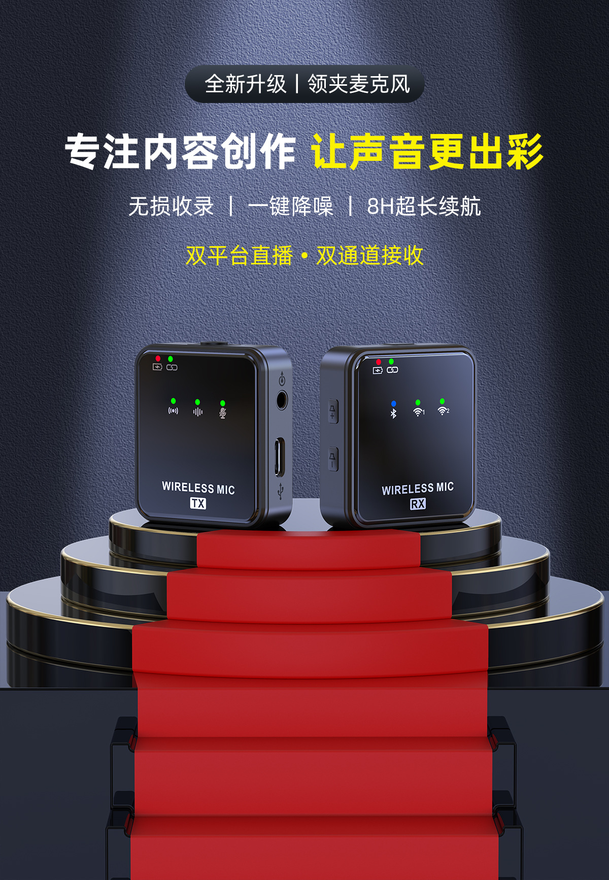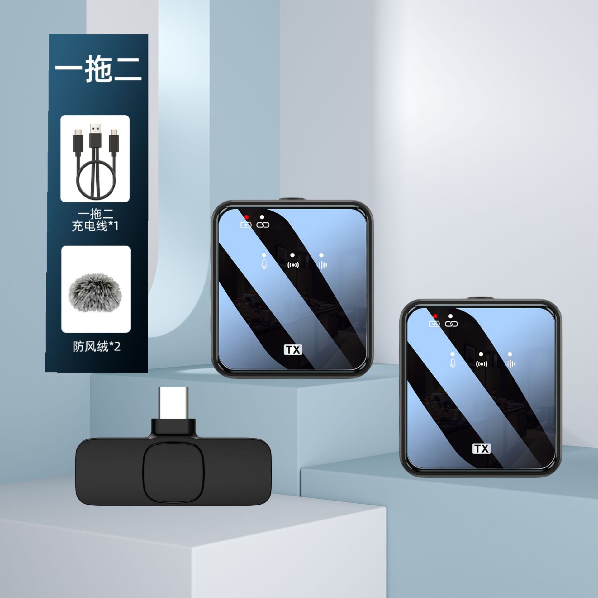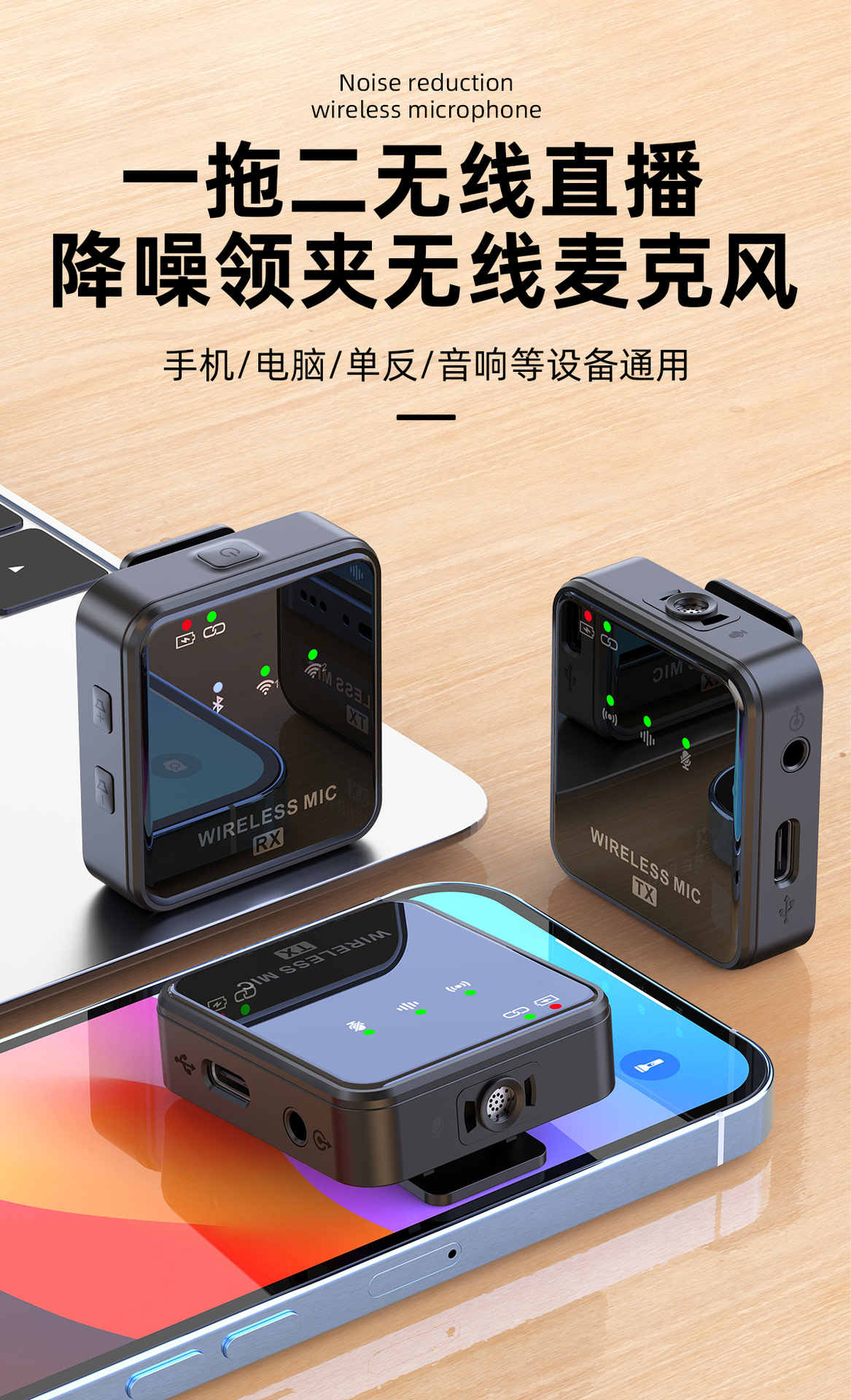 공장 직영 무선 칼라 클립 마이크 야외 라이브 녹음 소음 감소 마이크 1 드래그 2 무선 마이크