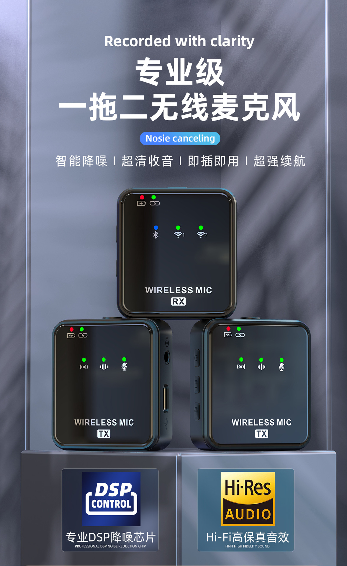 공장 직영 무선 칼라 클립 마이크 야외 라이브 녹음 소음 감소 마이크 1 드래그 2 무선 마이크스토어 가기
