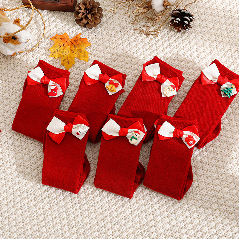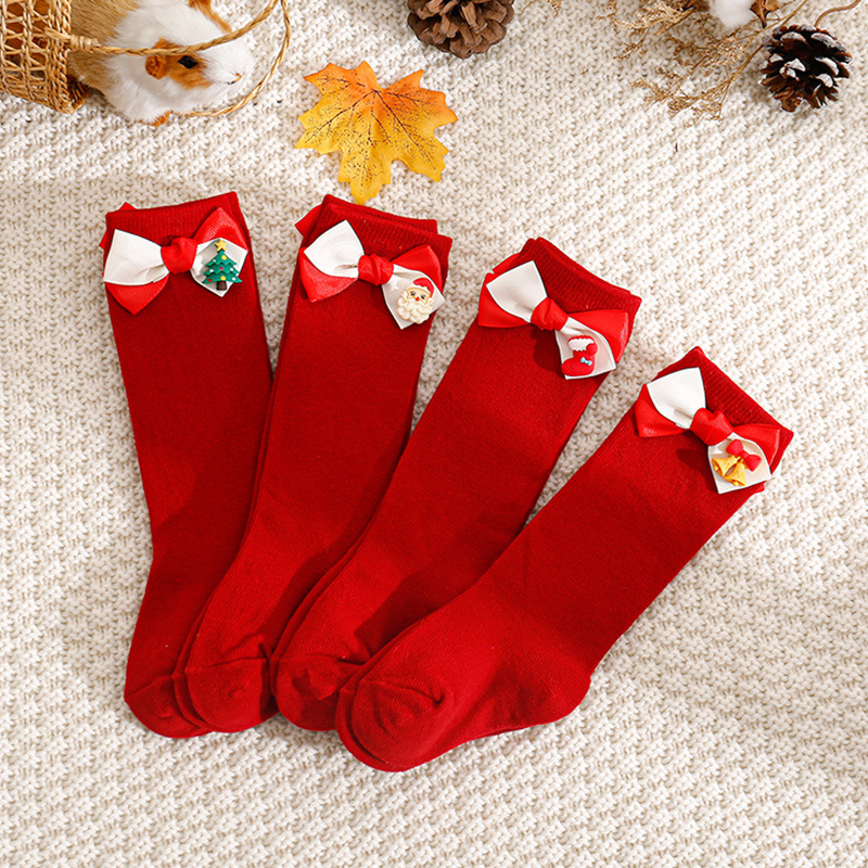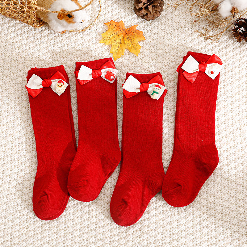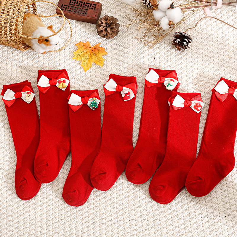 2024 크리스마스 아기 신년 어린이 중간 길이 양말 아기 양말 만화 INS 인기 롱 양말 빨간 양말