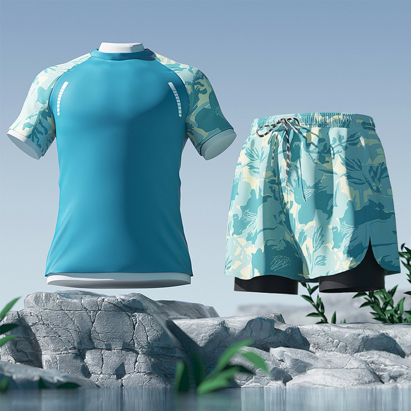 수영 트렁크 남자의 당황 방지 느슨한 속건 남자의 수영 트렁크 플랫 앵글 수영복 세트 비치 바지 온천 수영 장비