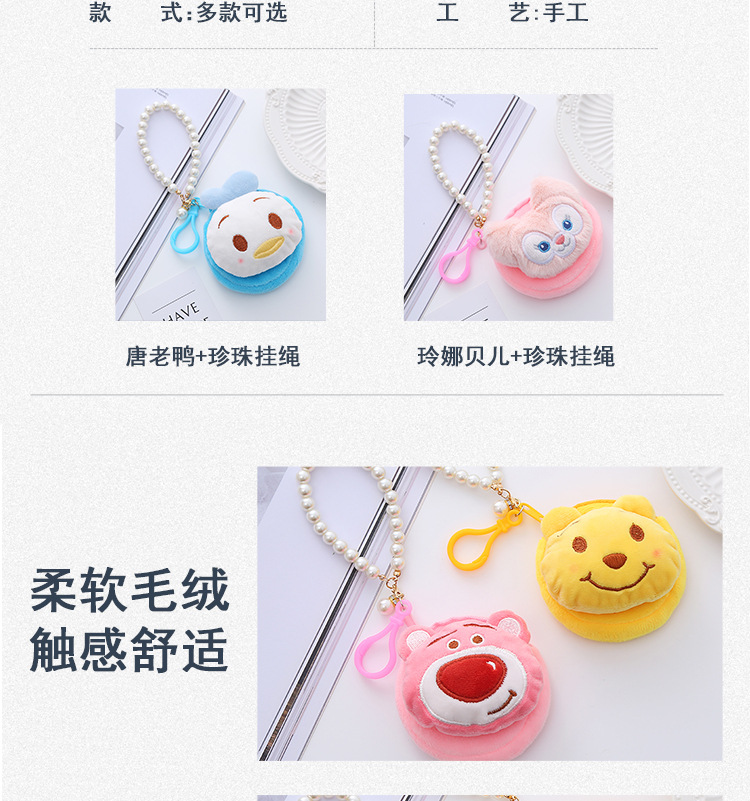 캔디 컬러 지퍼 입체 봉제 인형 동전 지갑 매달려 진주 끈 어린이 미니 보관 가방 커플 선물