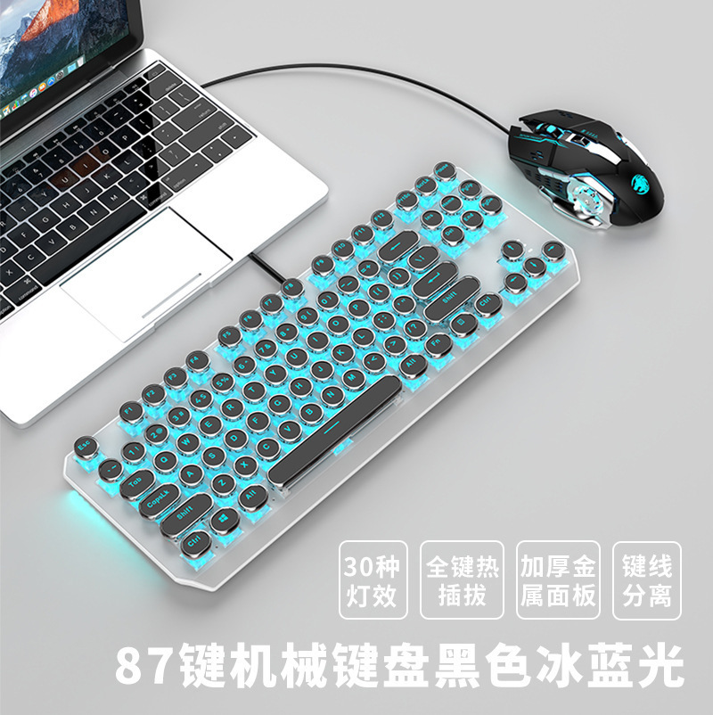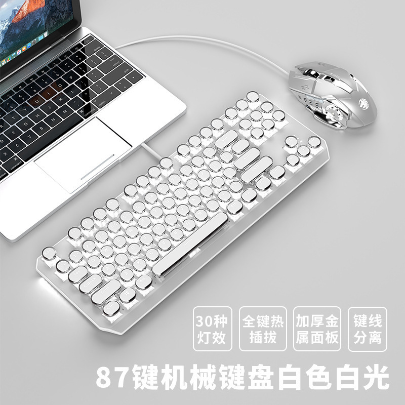 • 아이보리 화이트 화이트 그린 축 [87 키 유선] + 유선 마우스