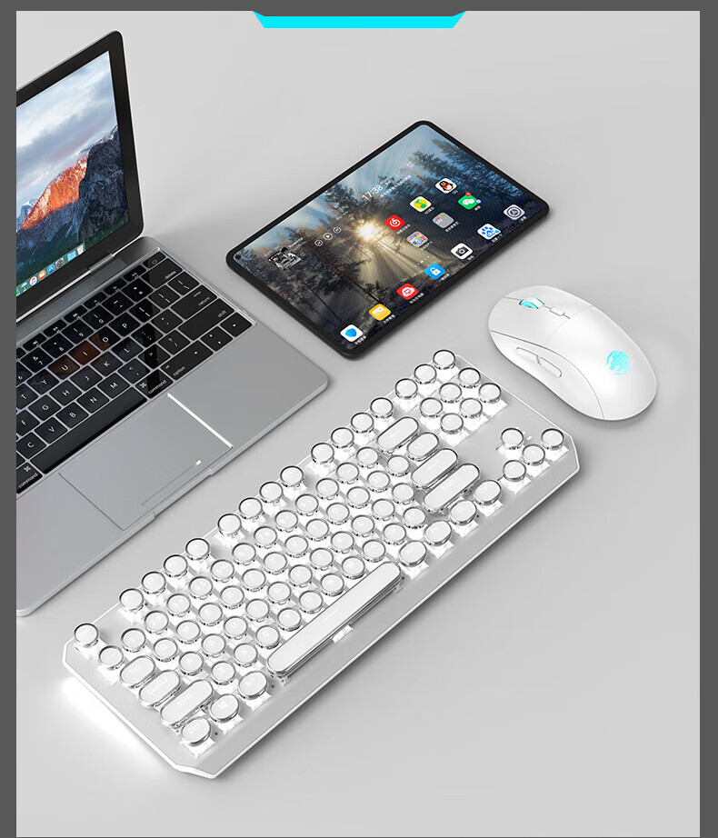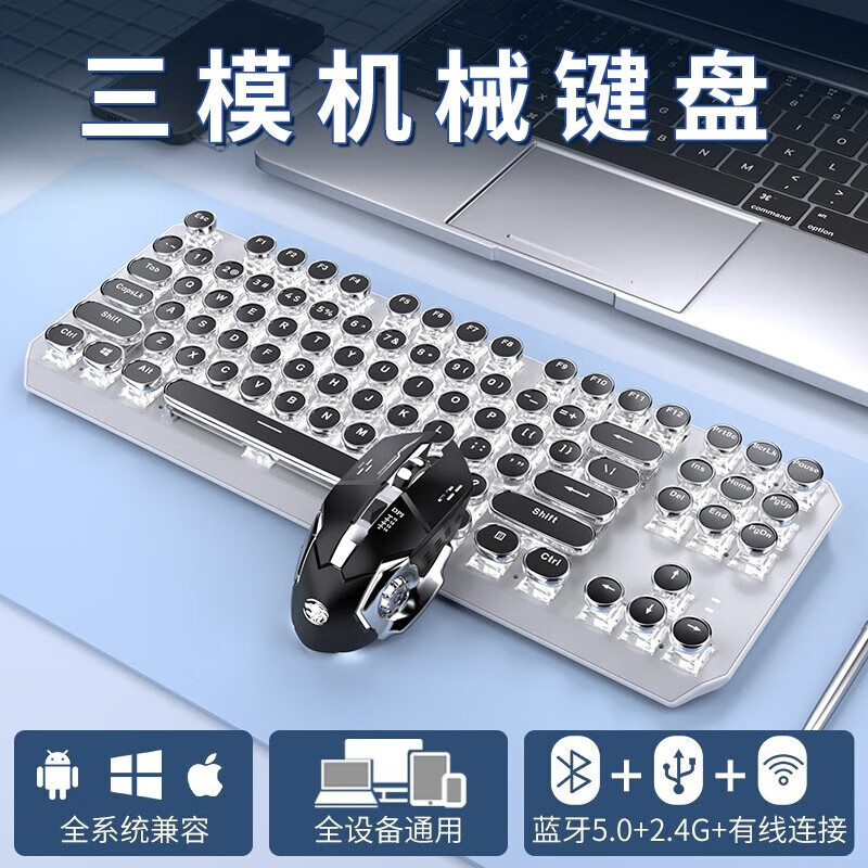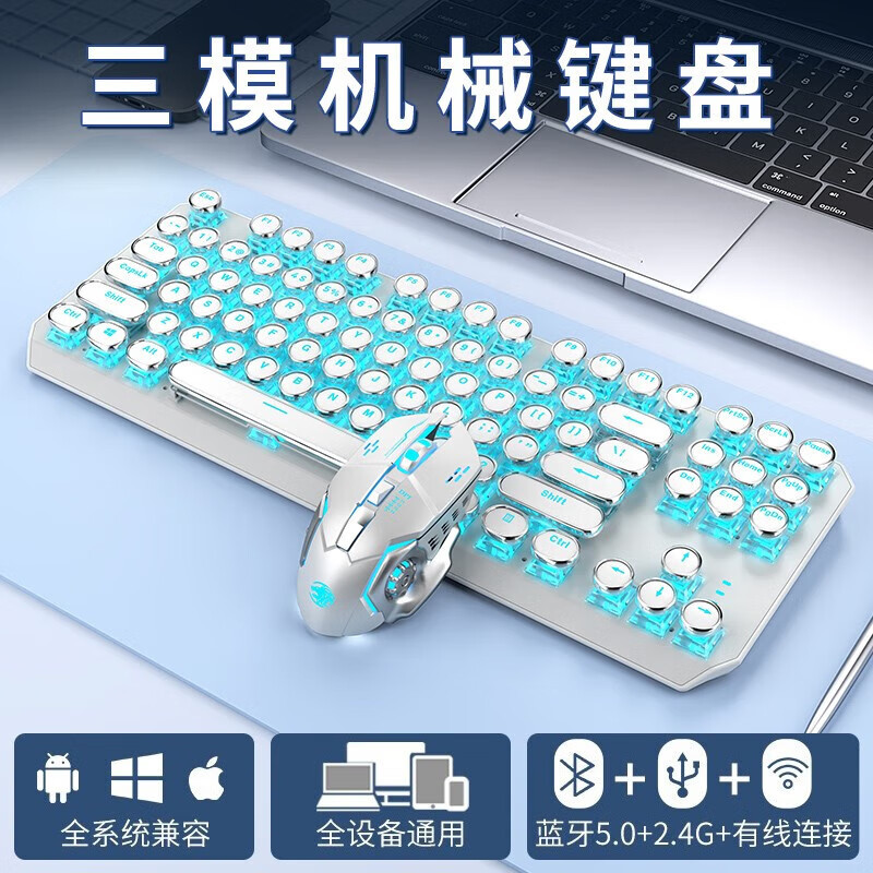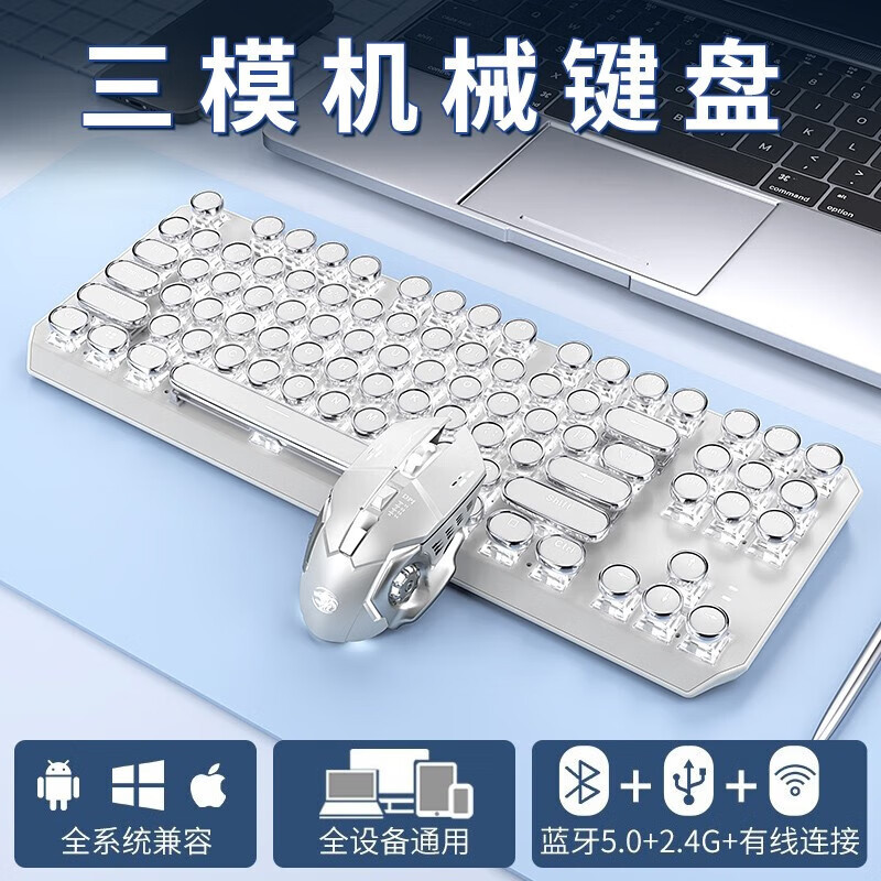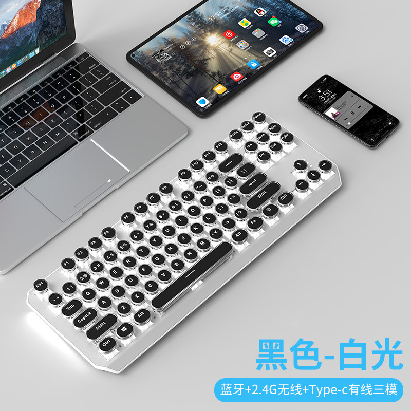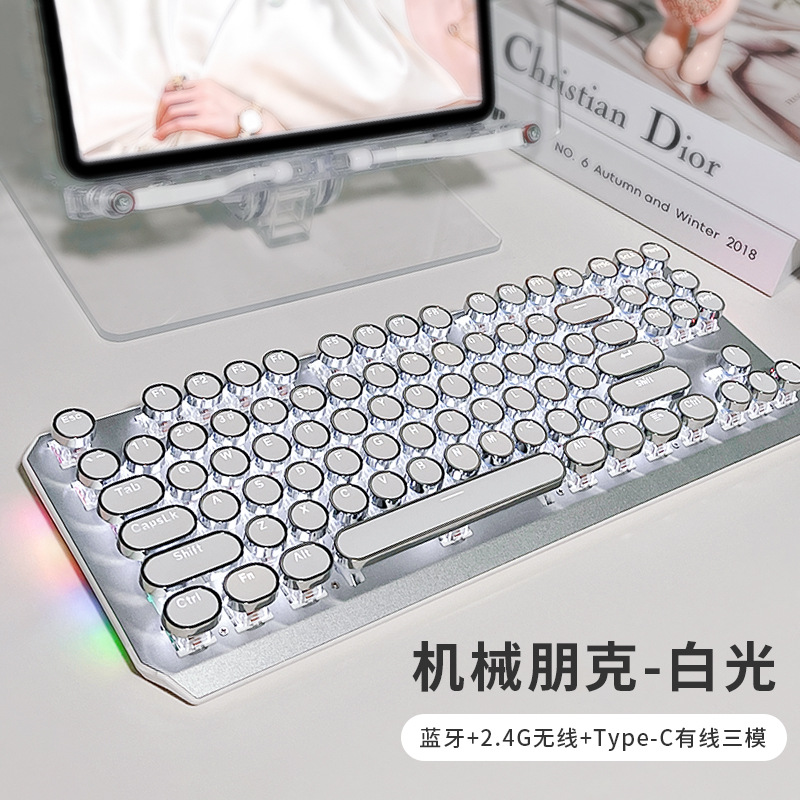 • 화이트 펑크 버전 3 모드 [그린축 아이스 라이트] + 무선 블루투스 듀얼 모드 마우스