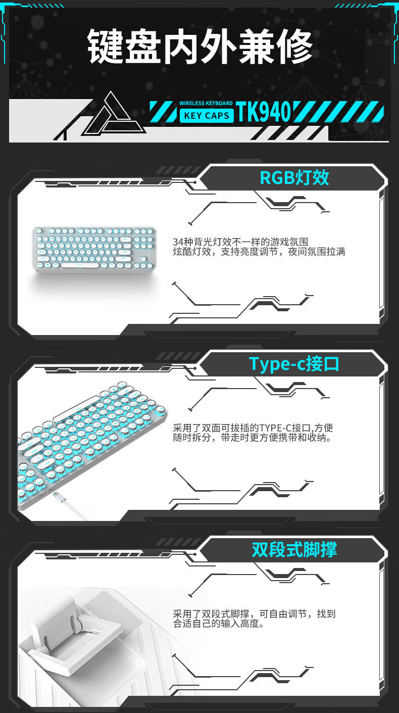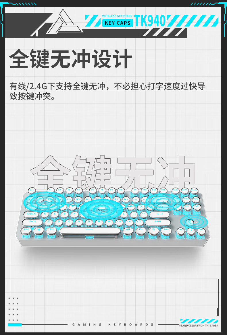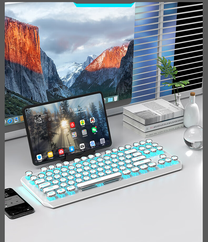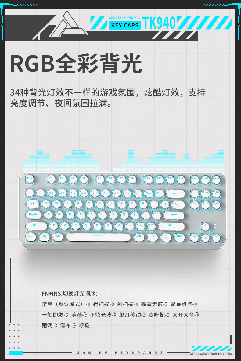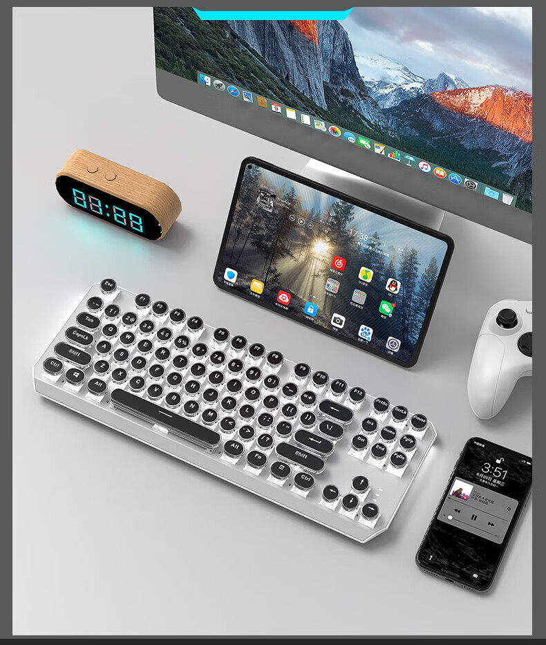 • 화이트 펑크 버전 3 모드 [그린축 아이스 라이트] + 무선 블루투스 듀얼 모드 마우스