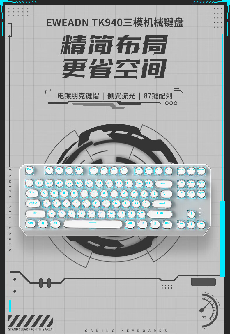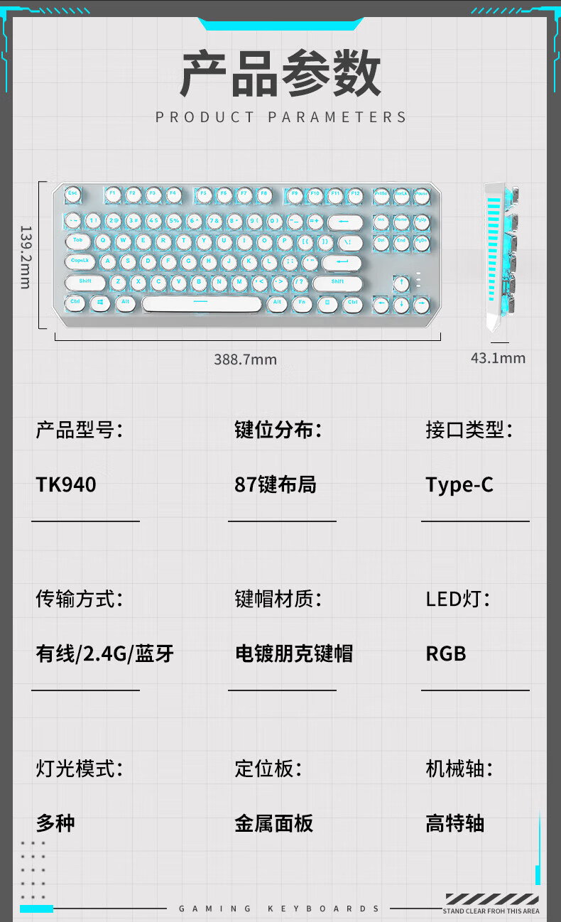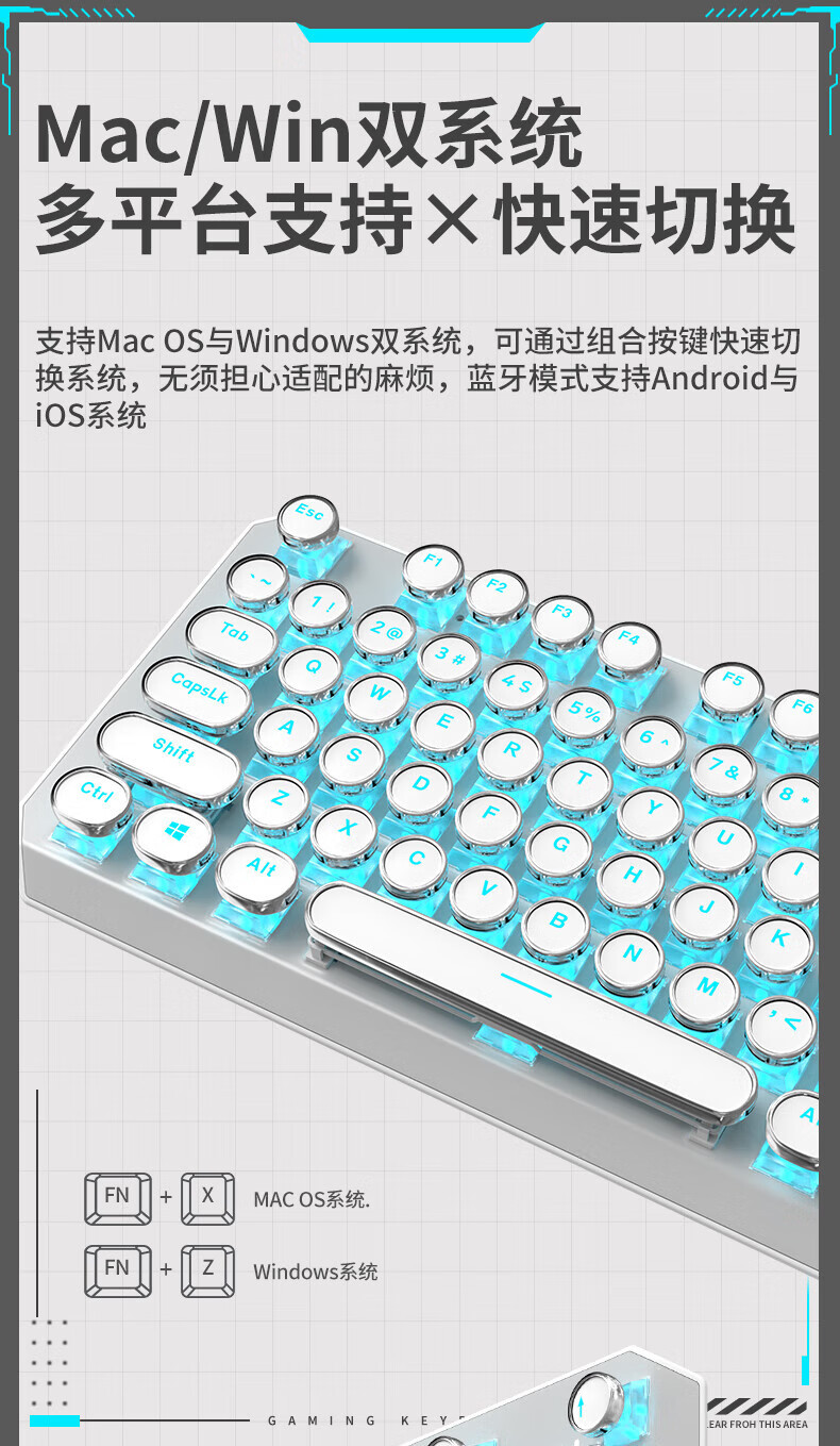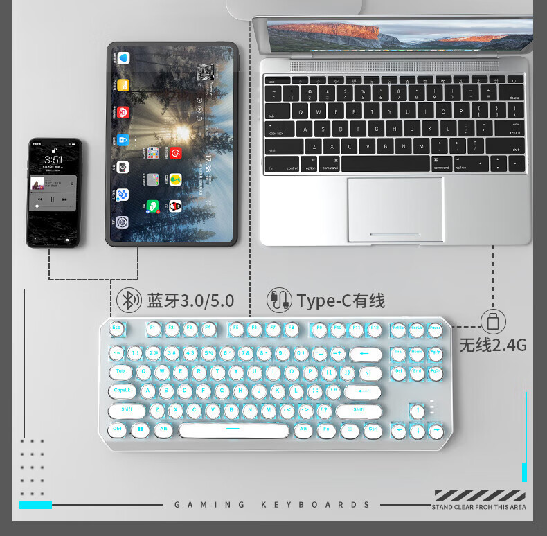 • 화이트 3 모드 [그린 샤프트 아이스 블루 라이트] 싱글 키보드