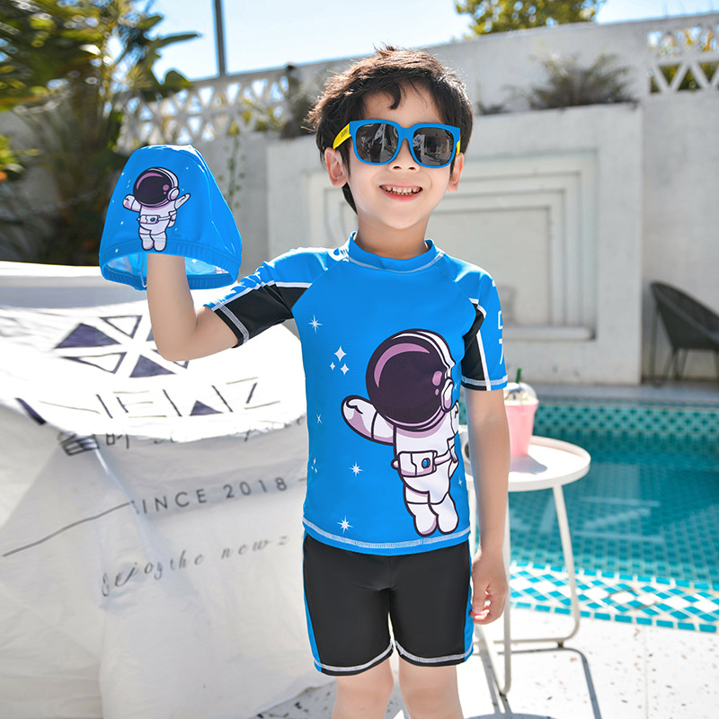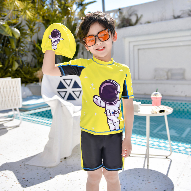 [아마존 아동 수영복] 수영 모자와 만화 귀여운 아기 스플릿 복서 장난 꾸러기 귀여운 작은 소년