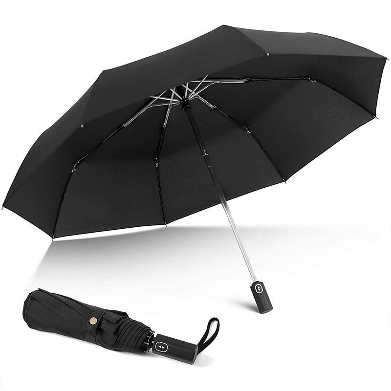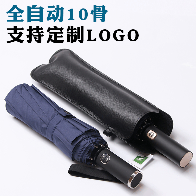 厂家直销十骨三折男士商务折叠自动雨伞仿皮手柄晴雨伞批发定制