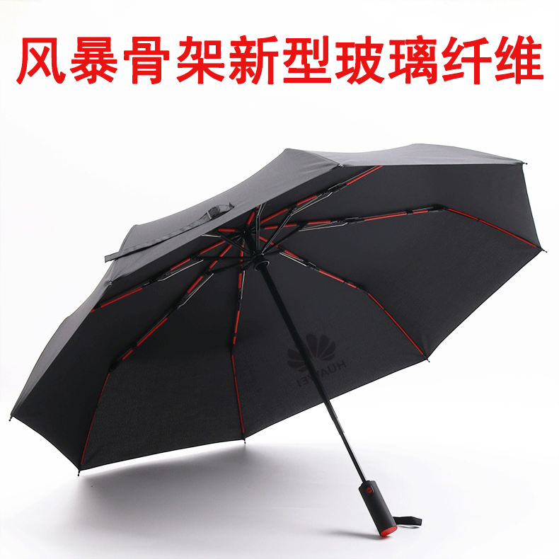 实力工厂华为广告伞定制 彩色纤维骨全自动折叠晴雨伞 印LOGO