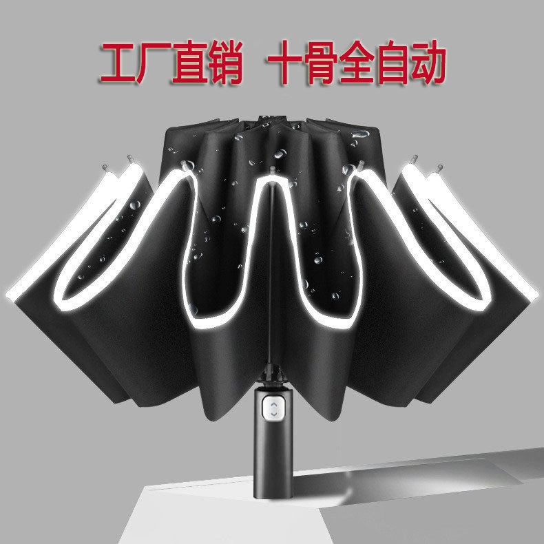 便宜促销10十骨全自动雨伞自动折叠黑胶反向伞 胶防紫外线太阳伞