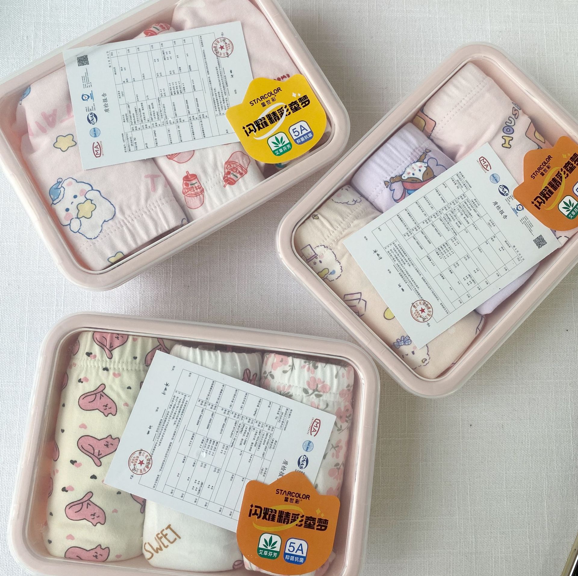 (상자 손상으로 인한 화물 보상 불가) 도시락통 속옷 3종 세트 zc-nk001 순면 가랑이 부분이 넉넉하고 통기성이 좋은 아동용스토어 가기