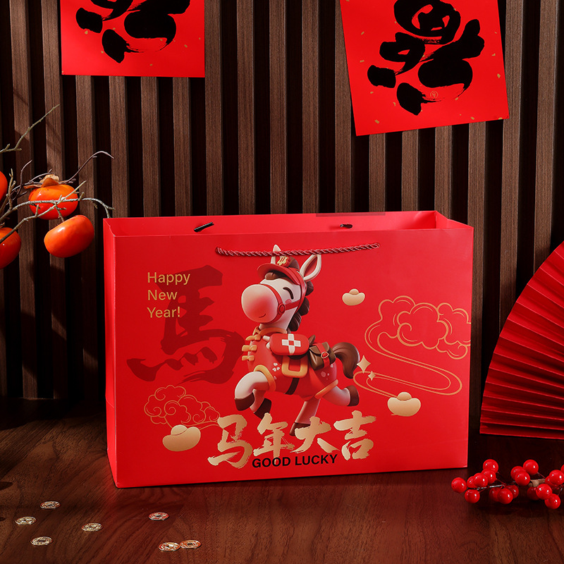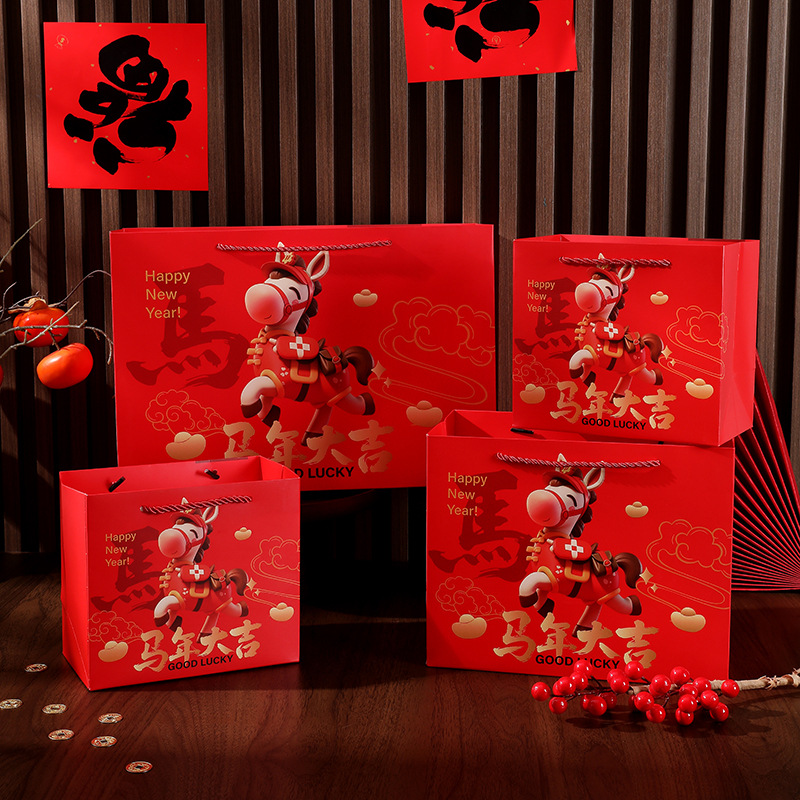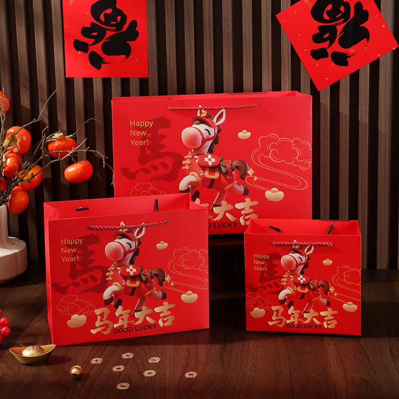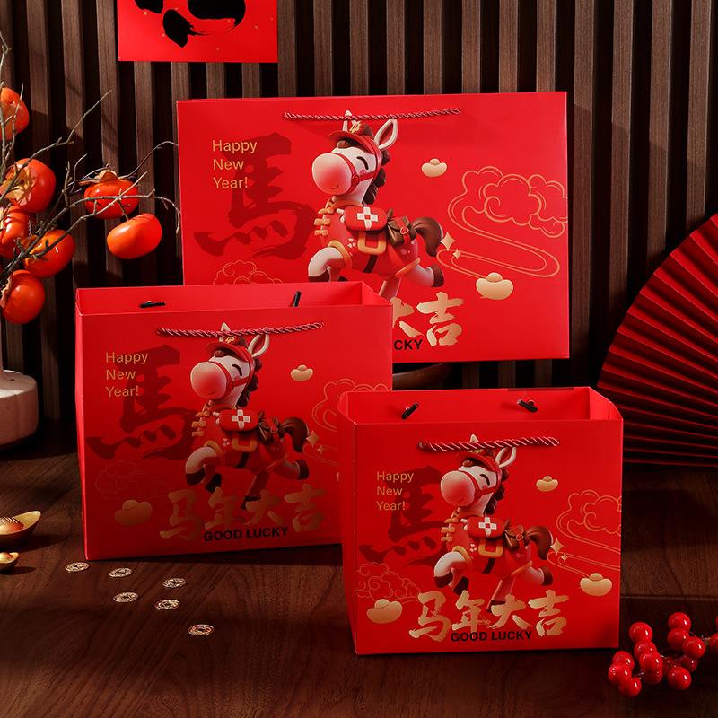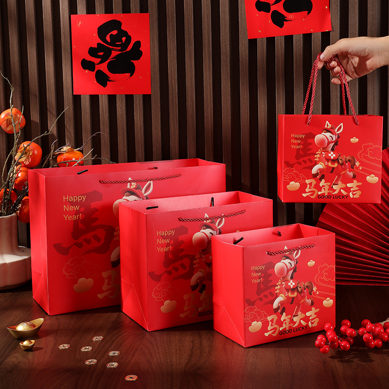 새해 선물 가방, 기념품 가방, 말의 해 핸드백, 중국풍 빨간색 포장 가방, 설날 선물 가방스토어 가기