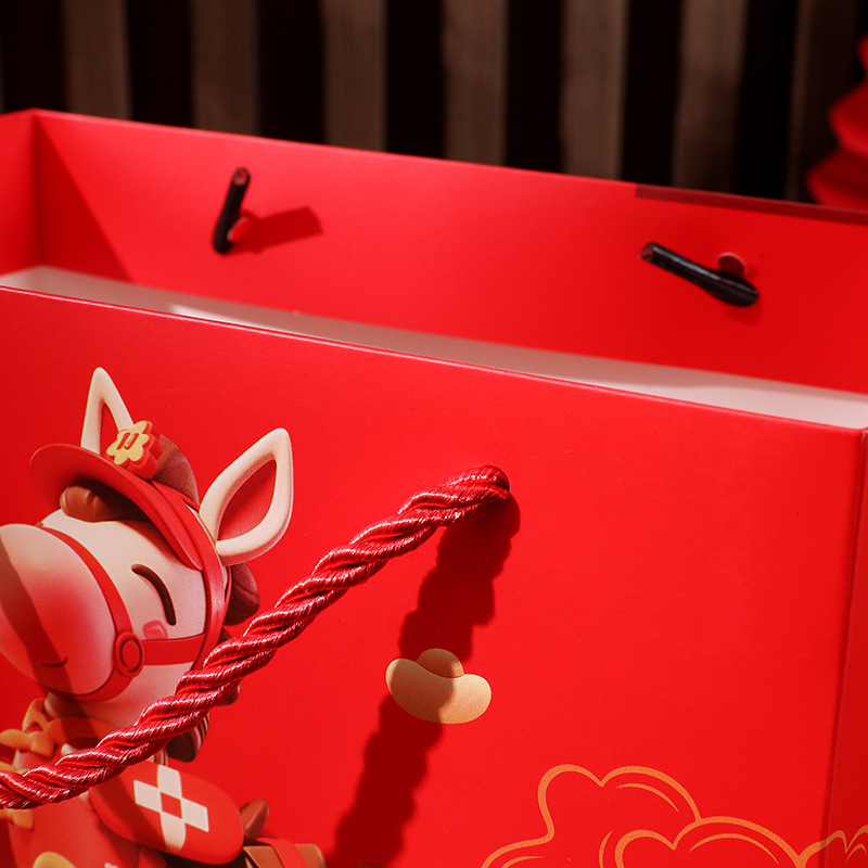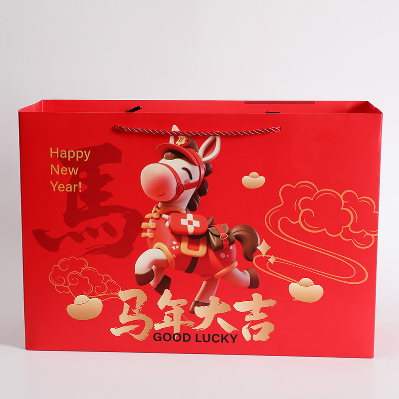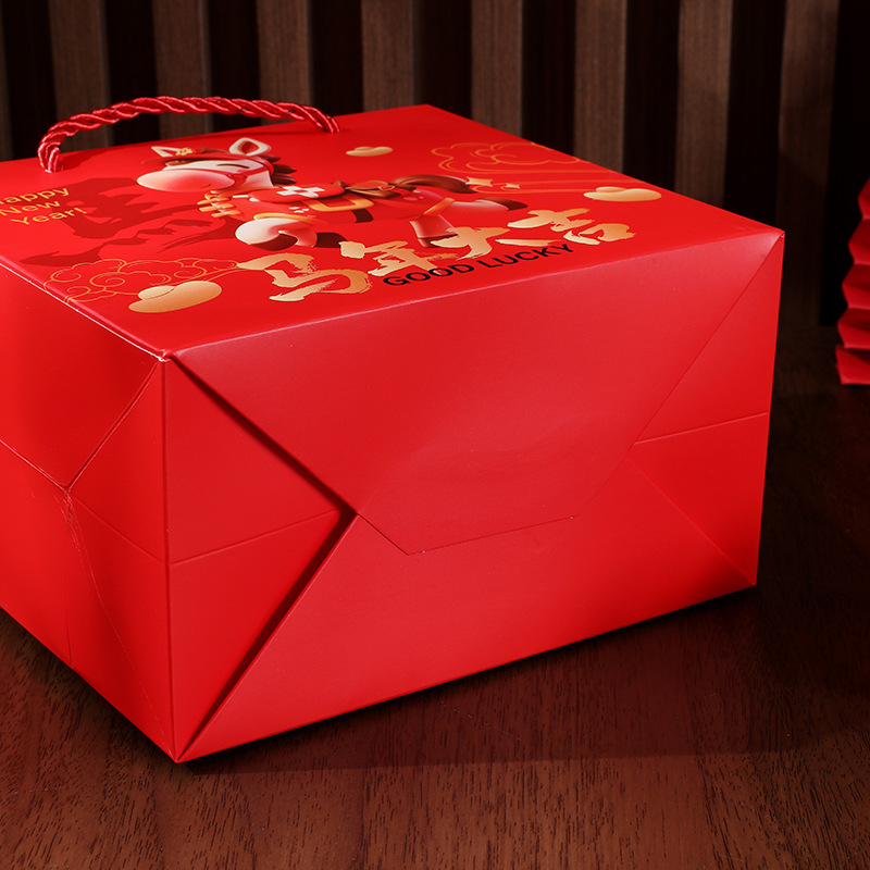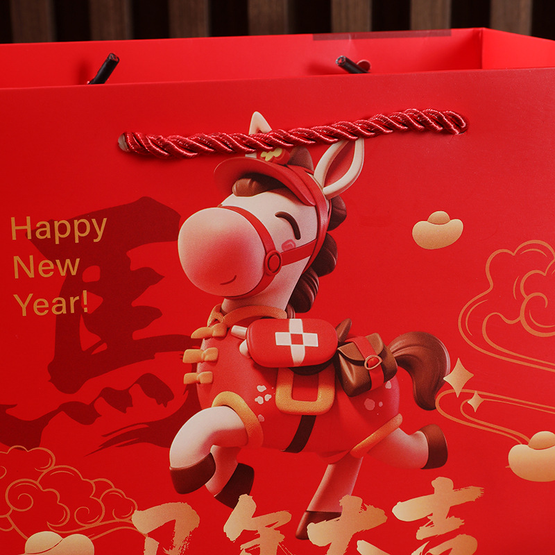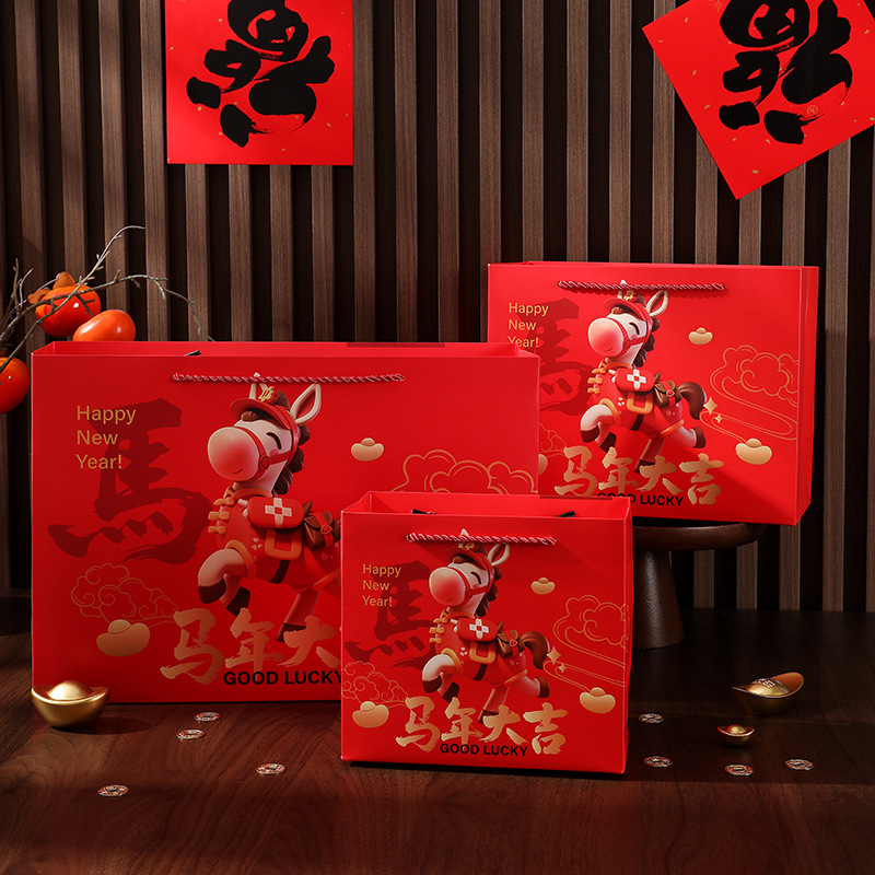 새해 선물 가방, 기념품 가방, 말의 해 핸드백, 중국풍 빨간색 포장 가방, 설날 선물 가방스토어 가기