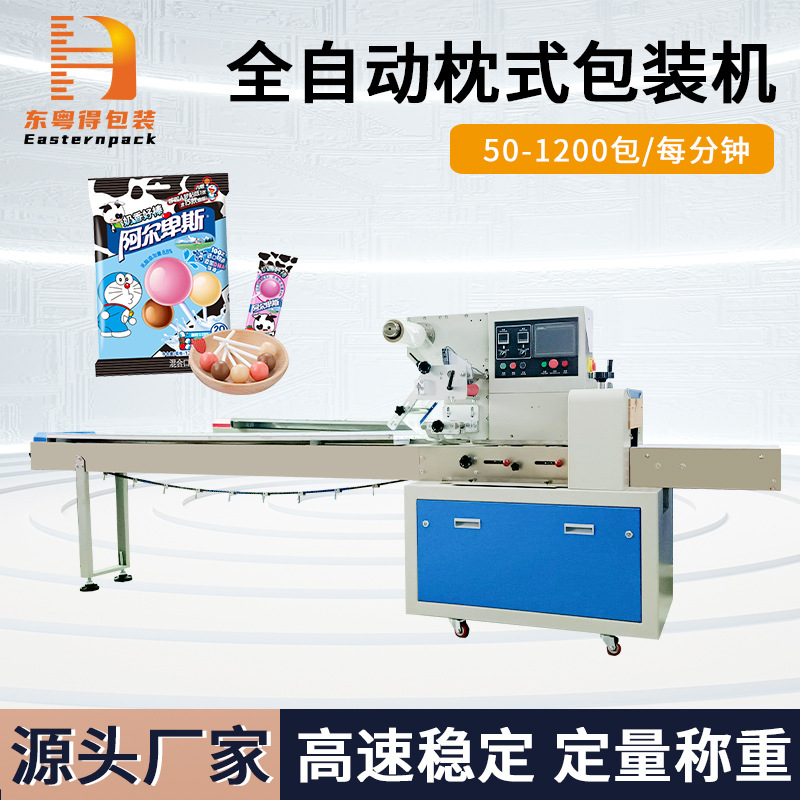 완전 자동 고속 캔디 베개 포장기 초콜릿 마시멜로 우유 조각 비스킷 빵 필름 베개 포장기