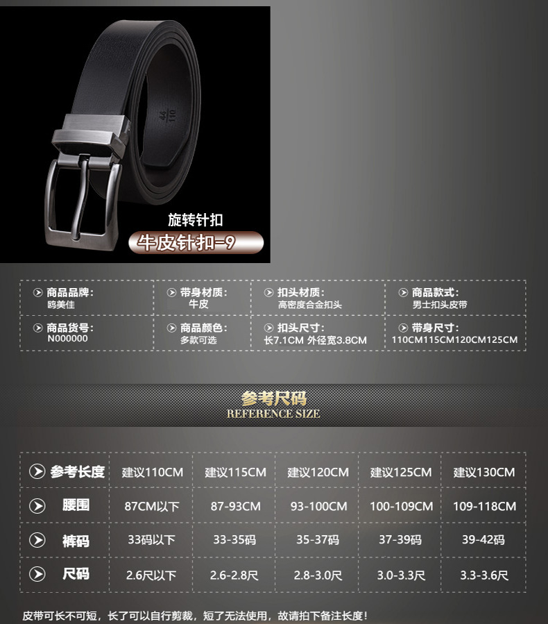 벨트 남성 도매 고급 가죽 회전 핀 버클 소가죽 비즈니스 남성 바지 벨트 남성 공장 직판스토어 가기