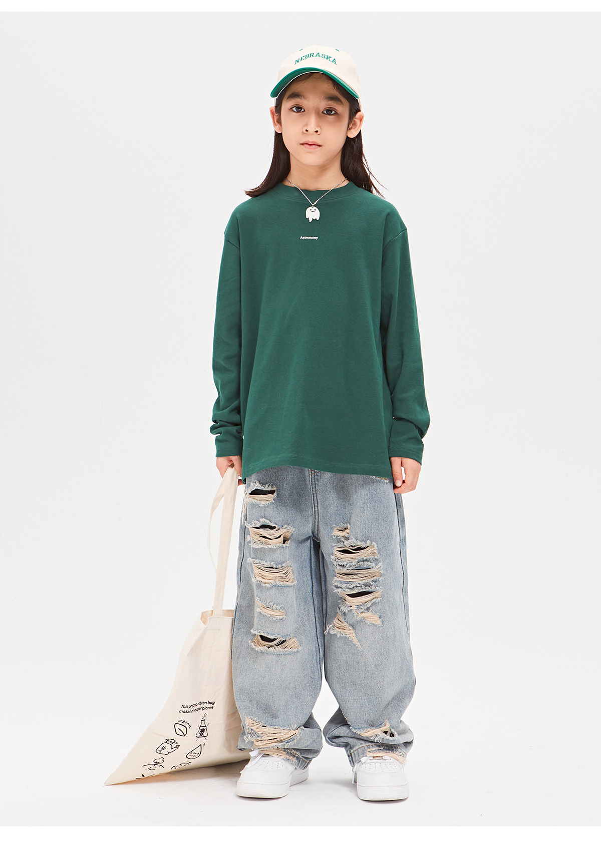 DK 아동복 가을과 겨울 소녀와 소년의 캐주얼 서양식 긴 소매 티셔츠 중 및 대형 어린이 브랜딩 두꺼운 따뜻한베이스 셔츠스토어 가기