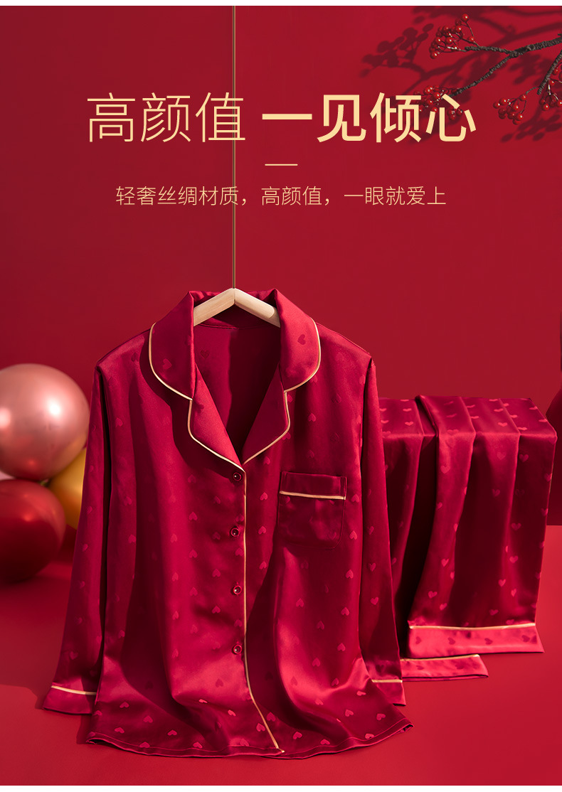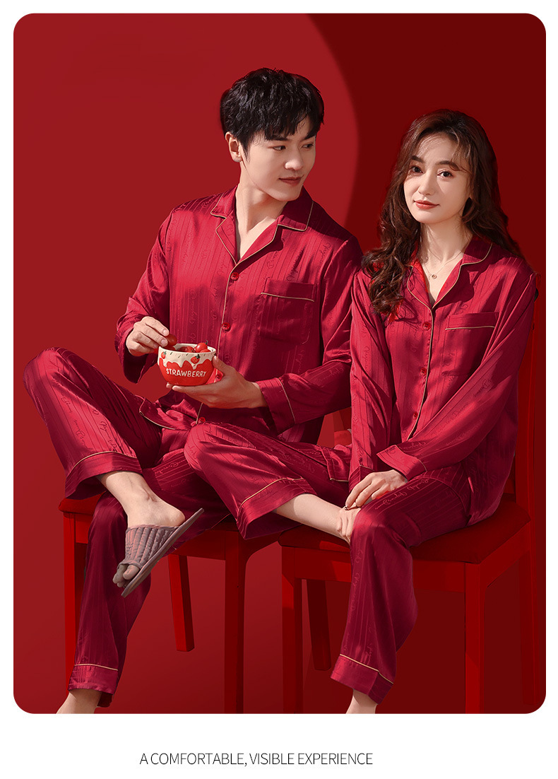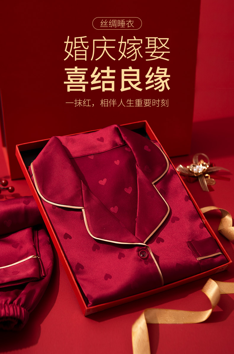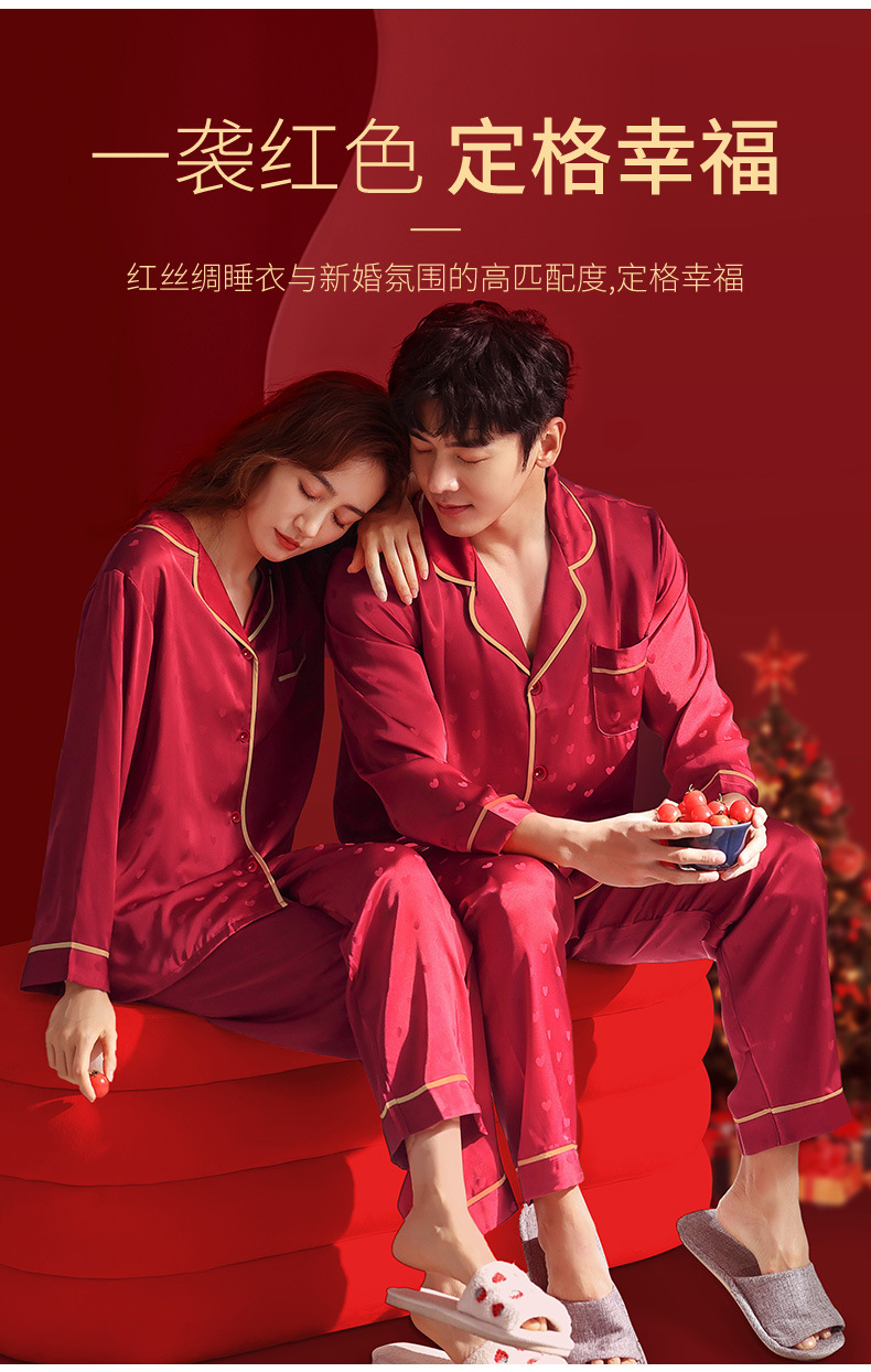 웨딩 파자마 신혼 부부 세트 하이 엔드 아이스 실크 레드 파자마 올해 남녀 신부와 신랑 선물 상자스토어 가기