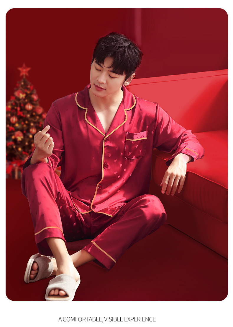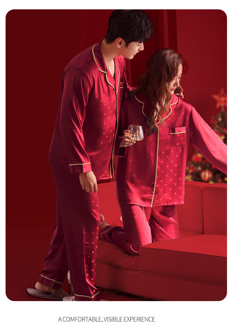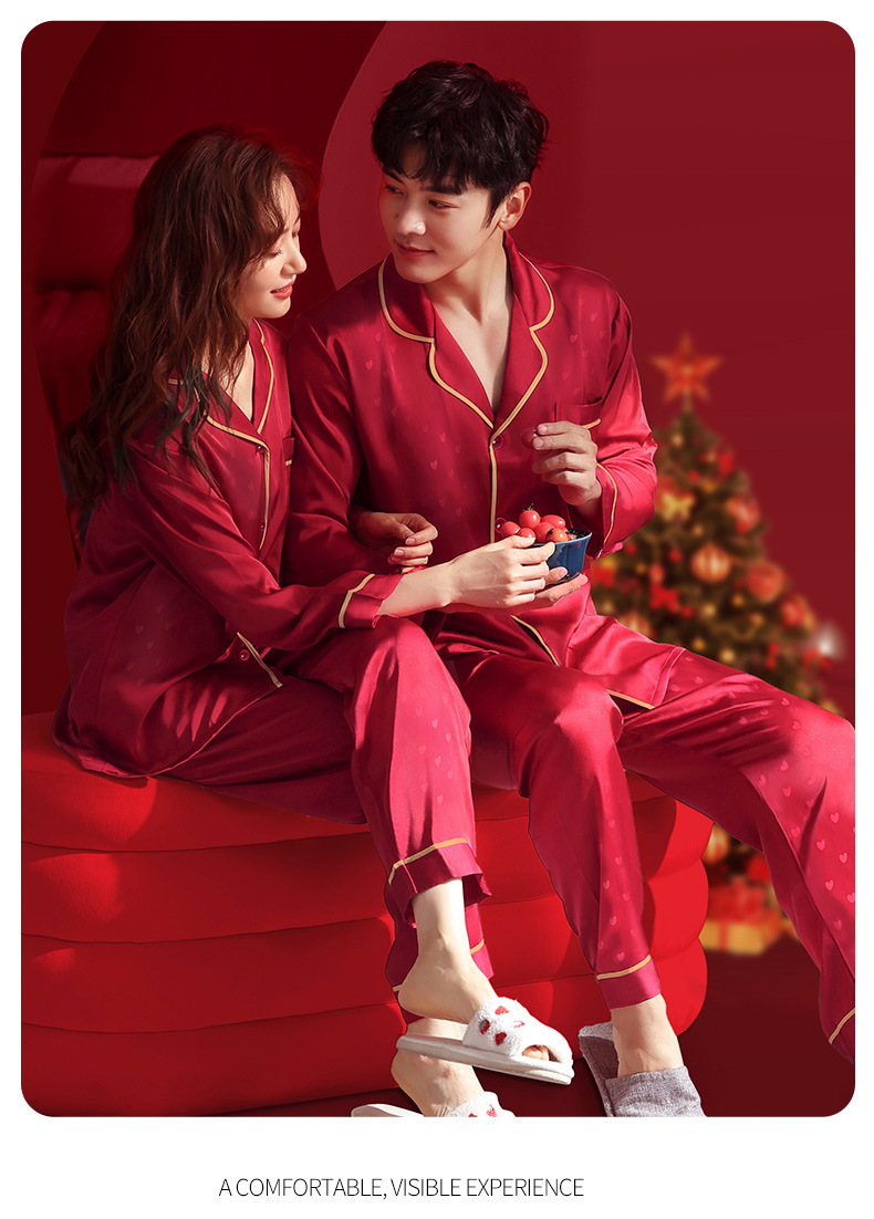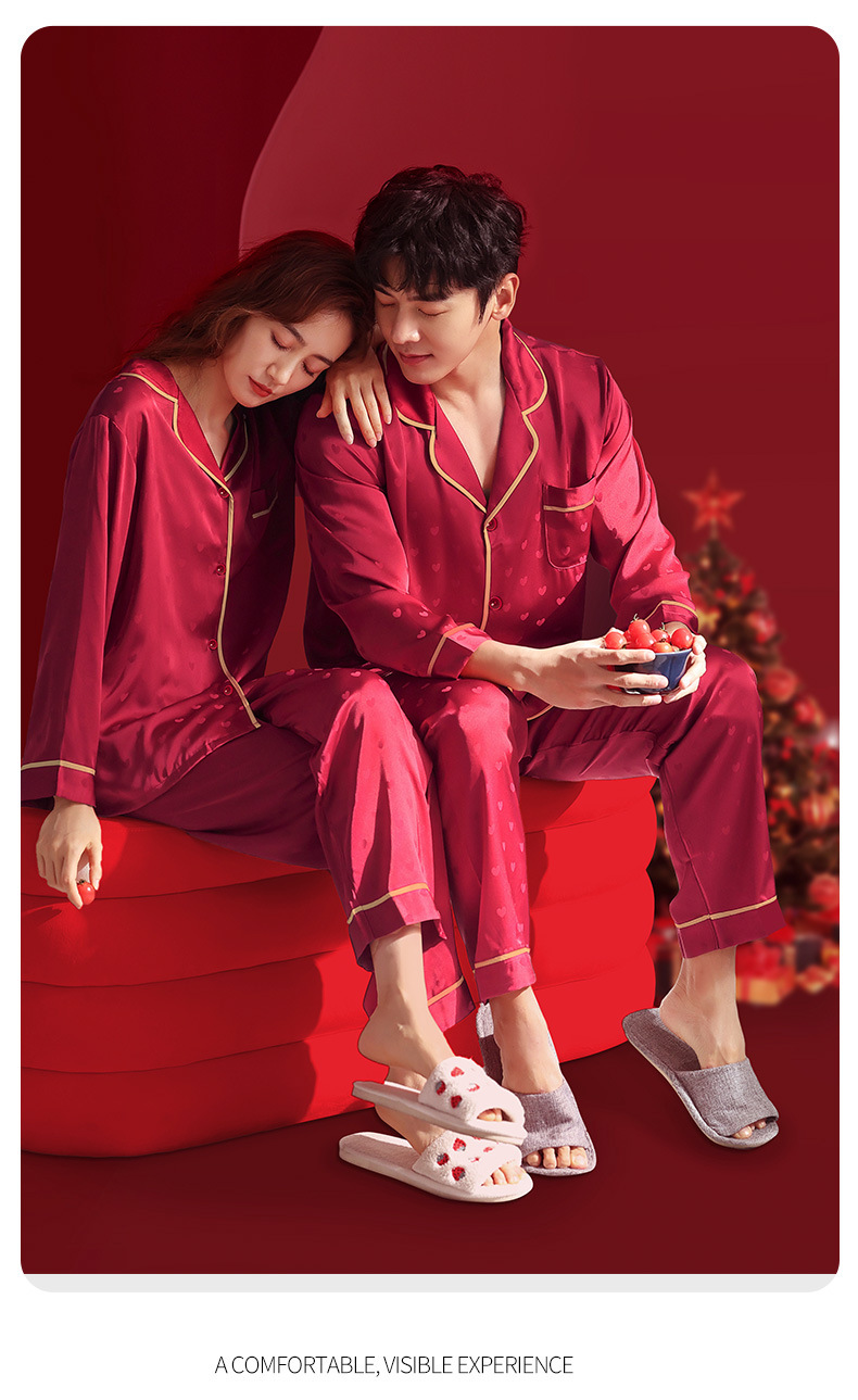 웨딩 파자마 신혼 부부 세트 하이 엔드 아이스 실크 레드 파자마 올해 남녀 신부와 신랑 선물 상자스토어 가기