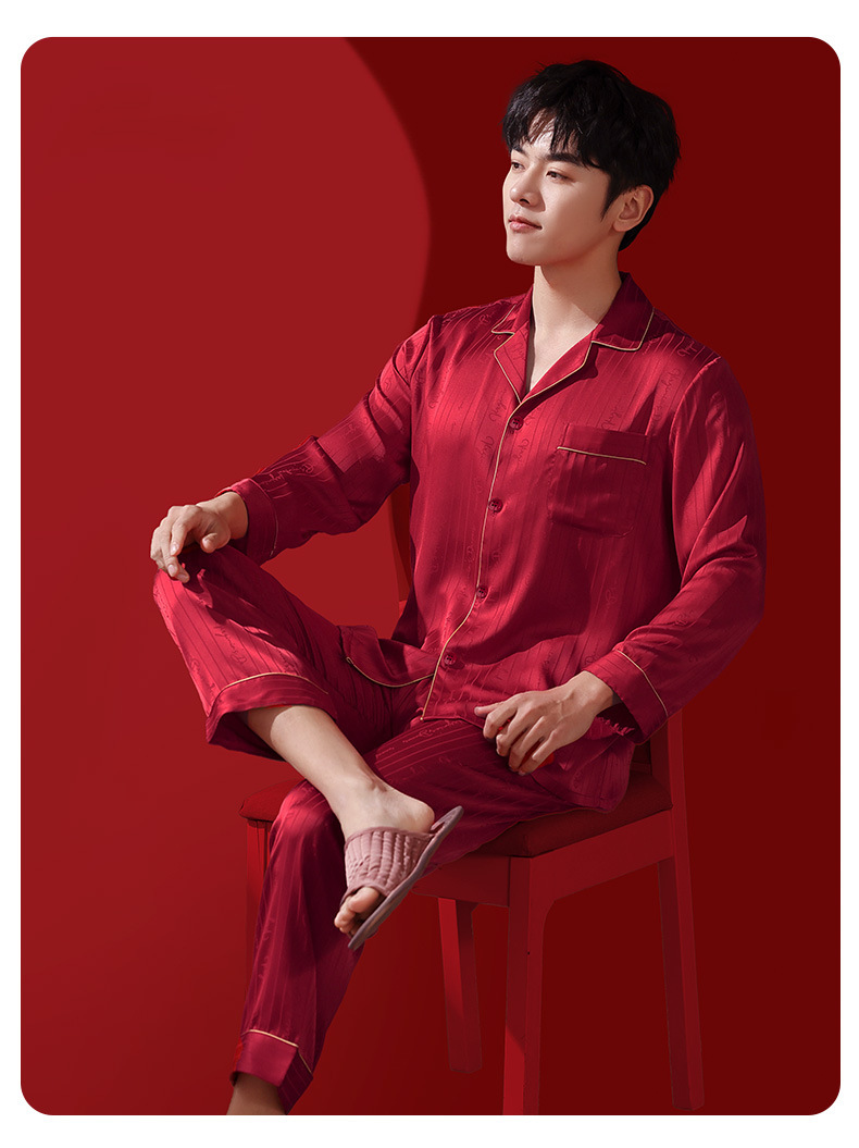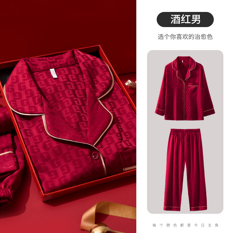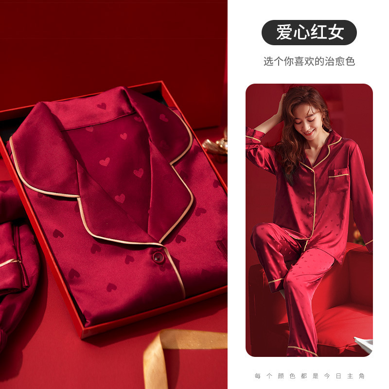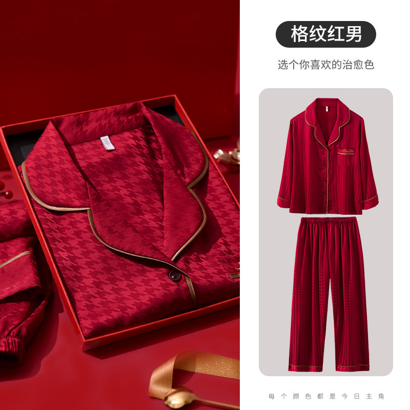 웨딩 파자마 신혼 부부 세트 하이 엔드 아이스 실크 레드 파자마 올해 남녀 신부와 신랑 선물 상자