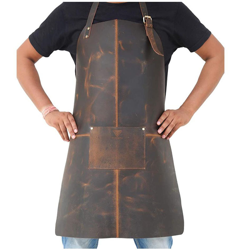 미친 말 가죽 앞치마 주방 커피 숍 목공 이발사 앞치마 대외 무역 가죽 라벨 로고 스커트 민소매