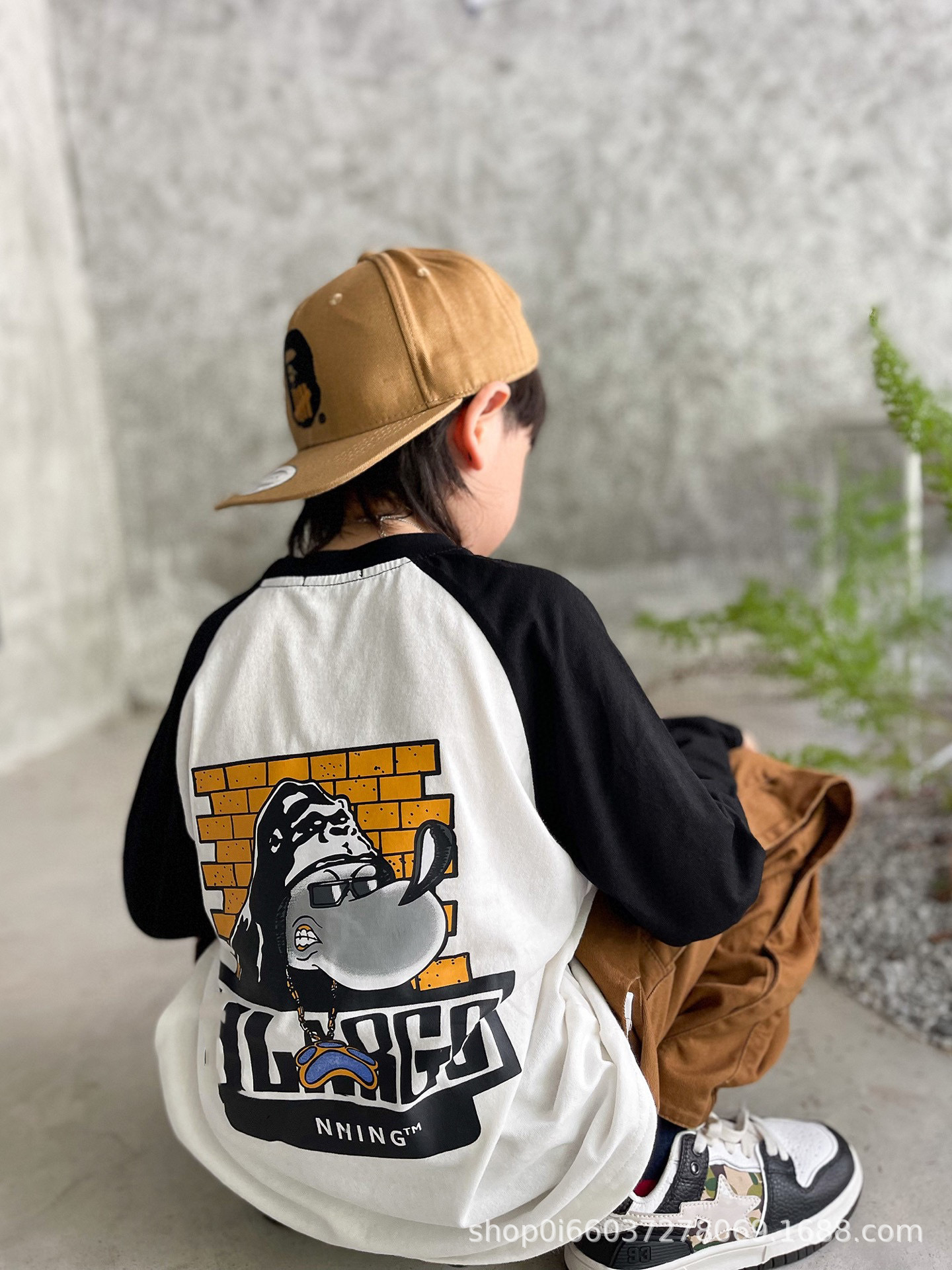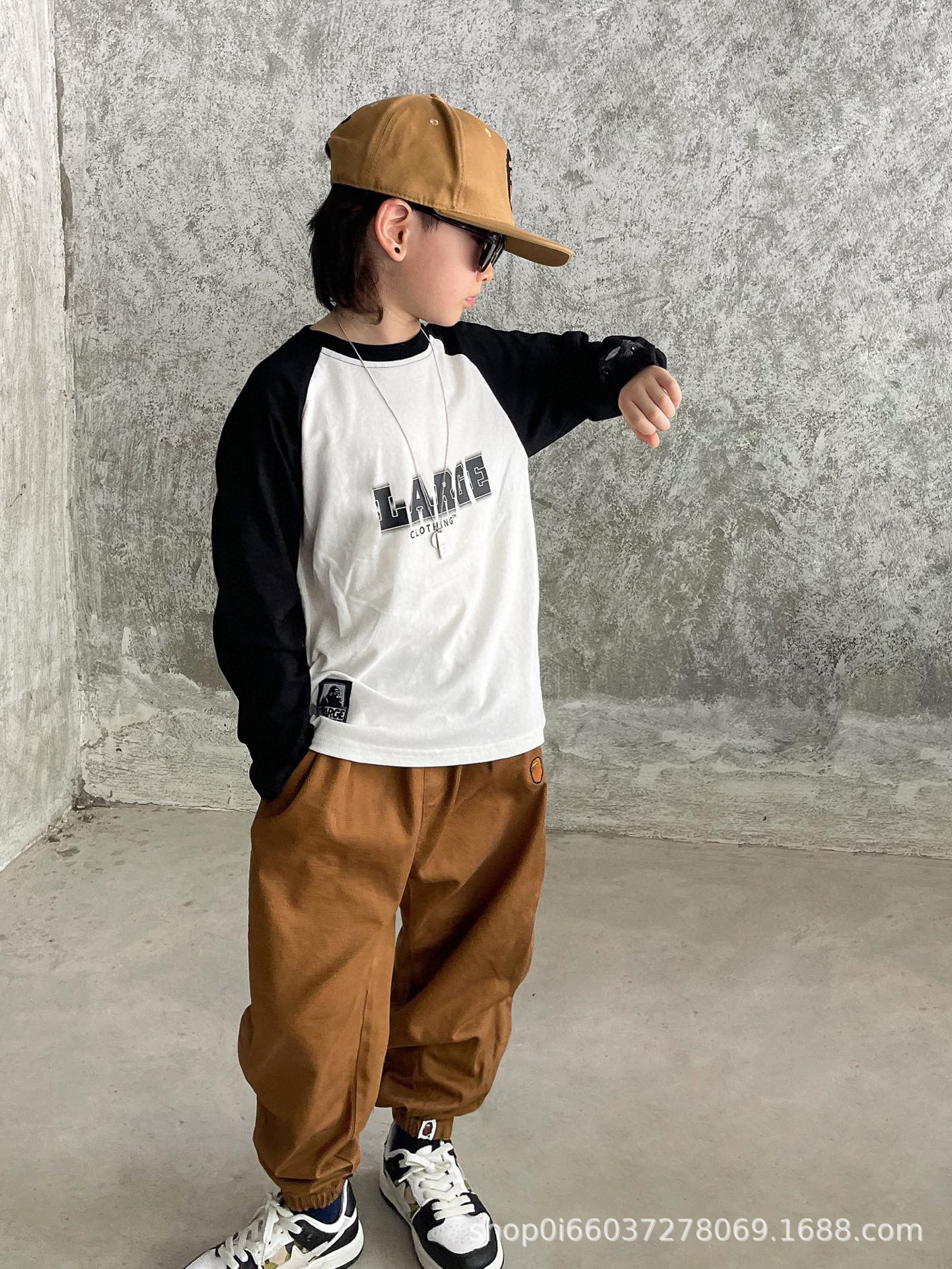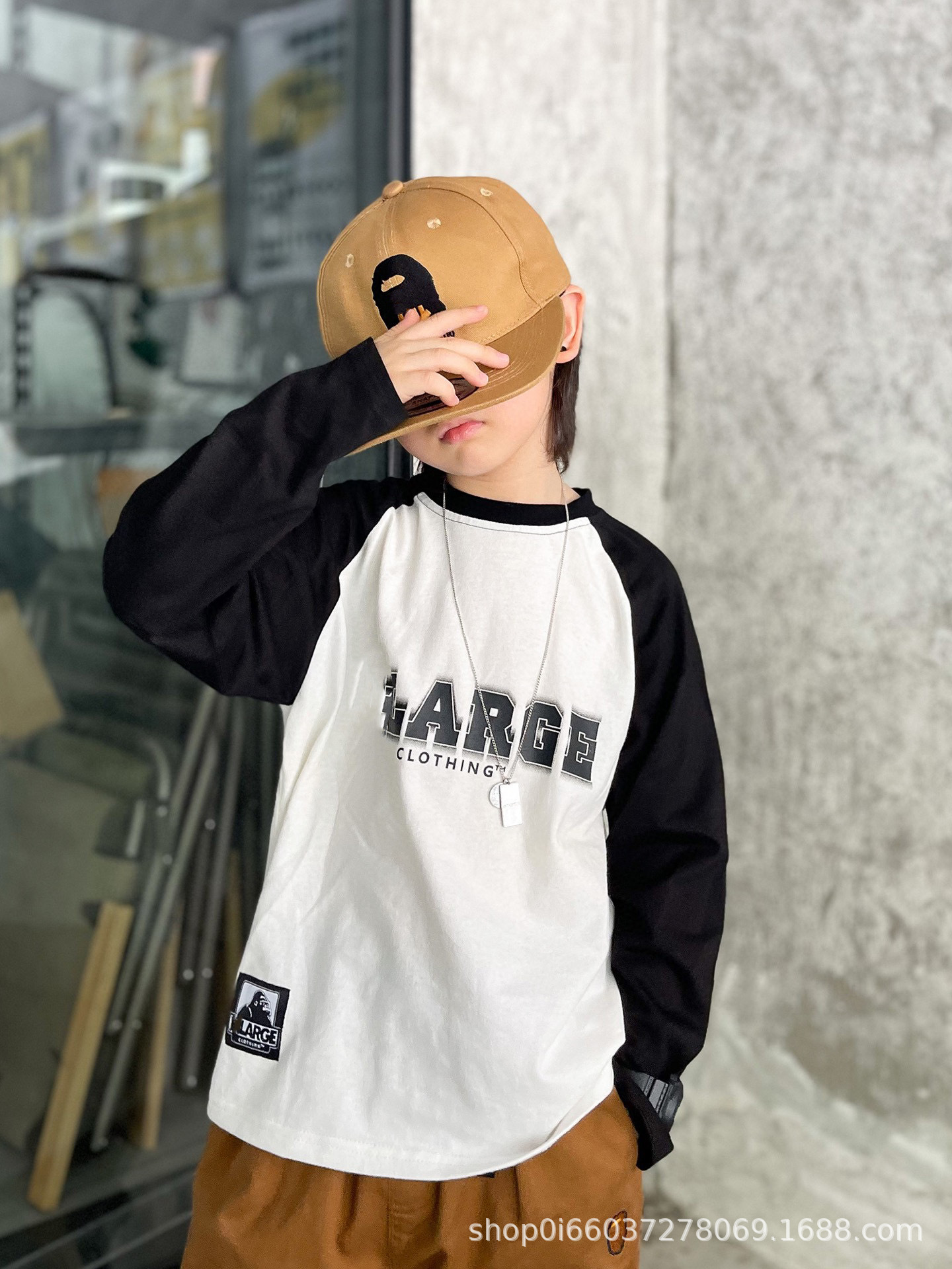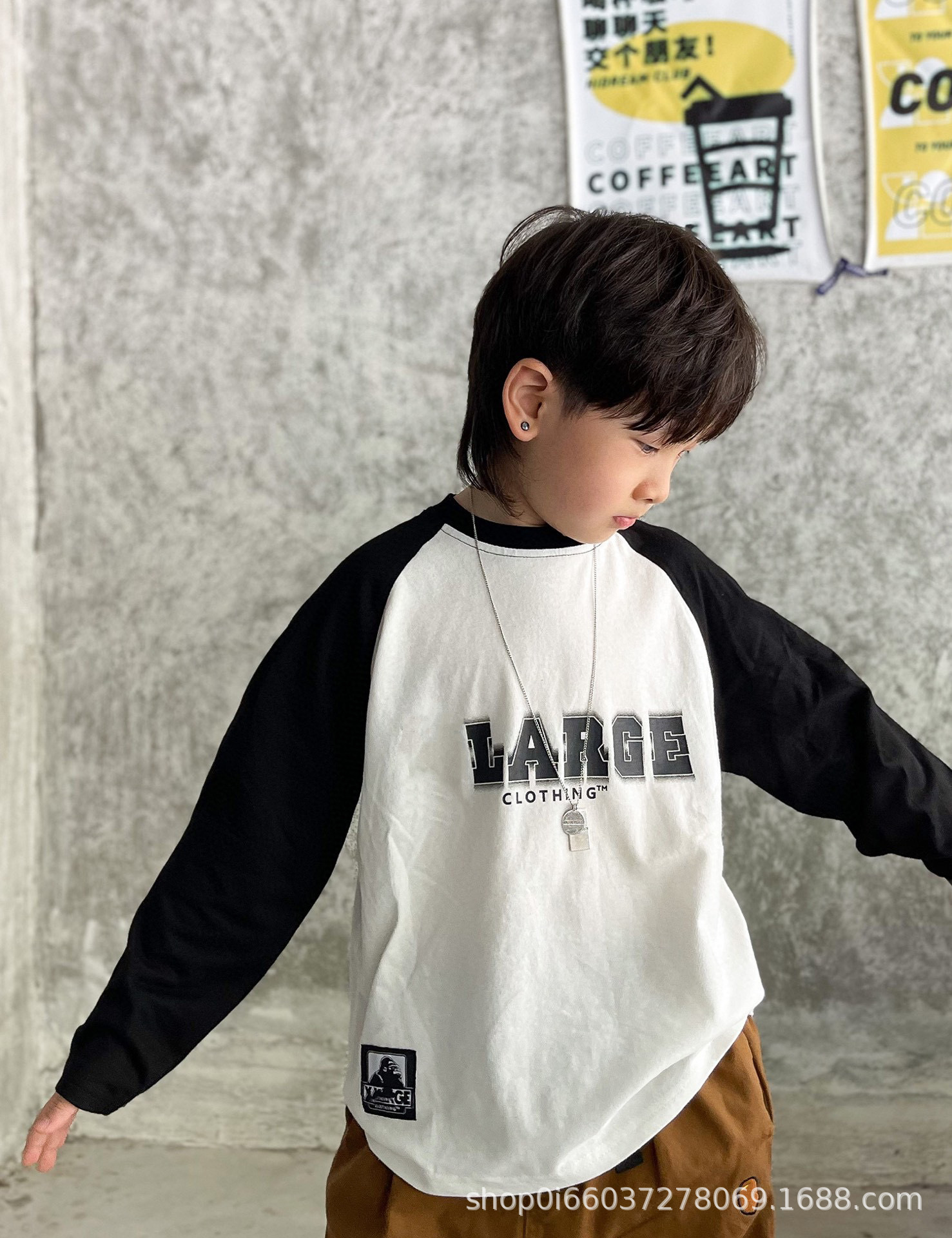 22 가을 새로운 일본 트렌디 소년 아동복 순수한면 캐주얼 느슨한 서양식 만화 라슬란 긴 소매 둥근 목 T스토어 가기