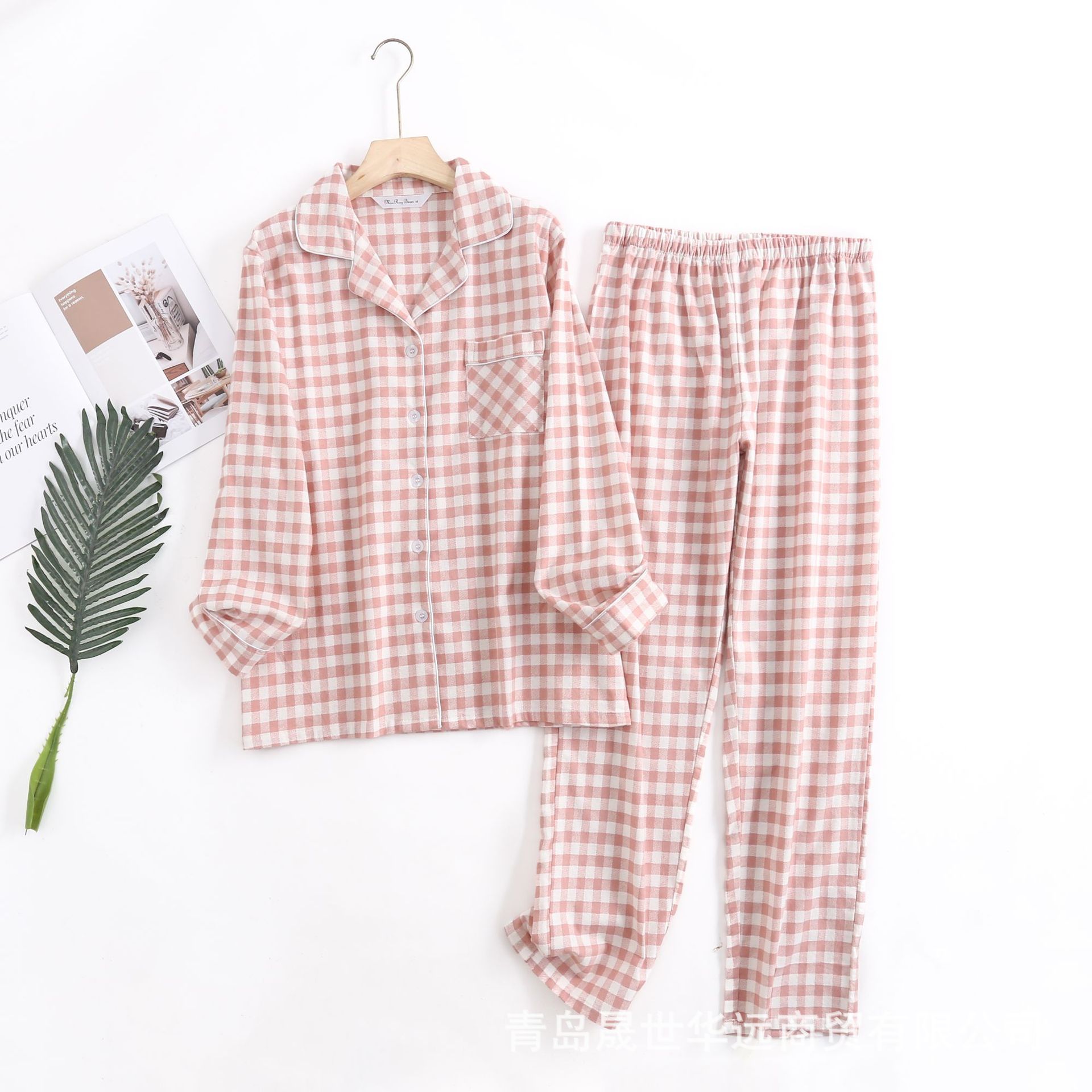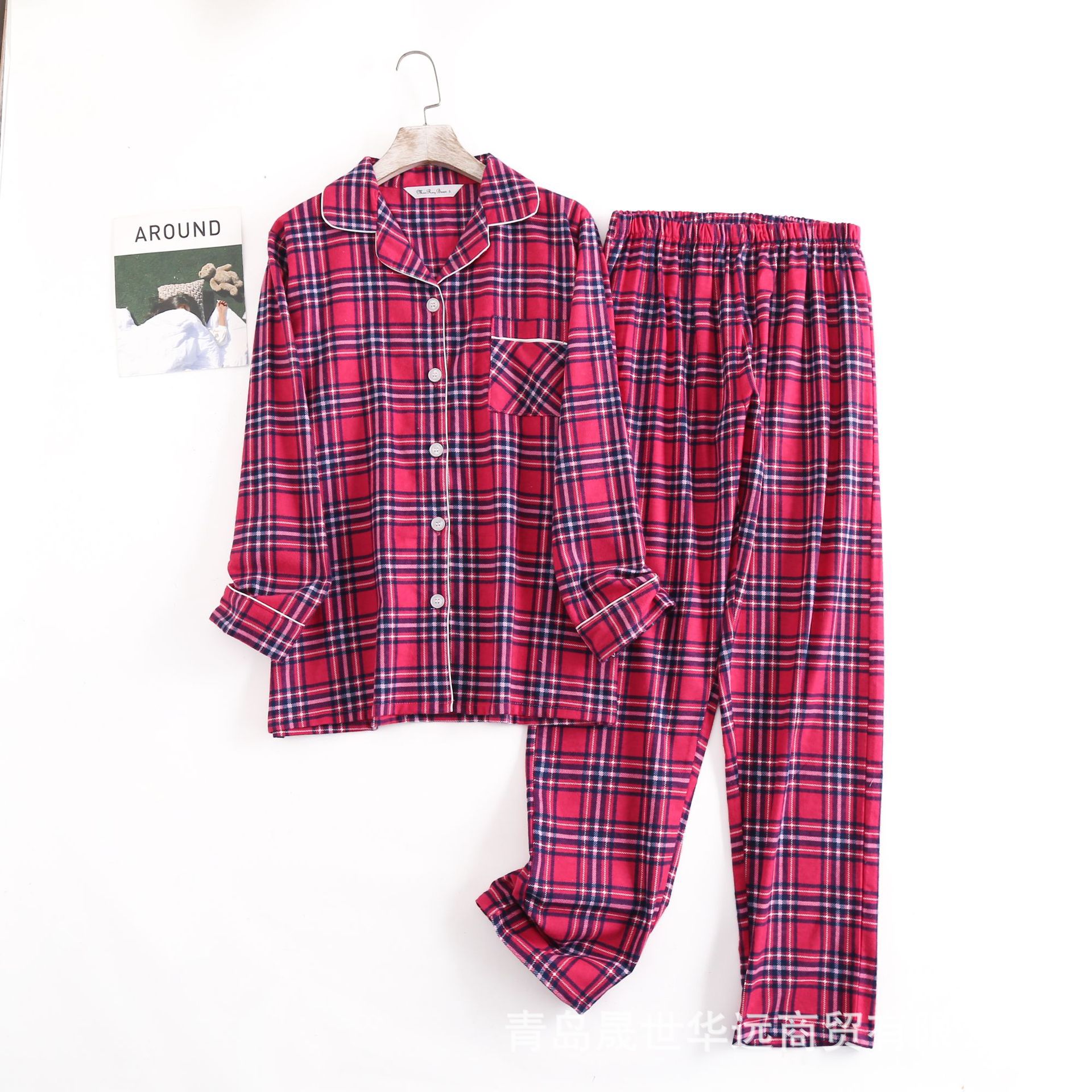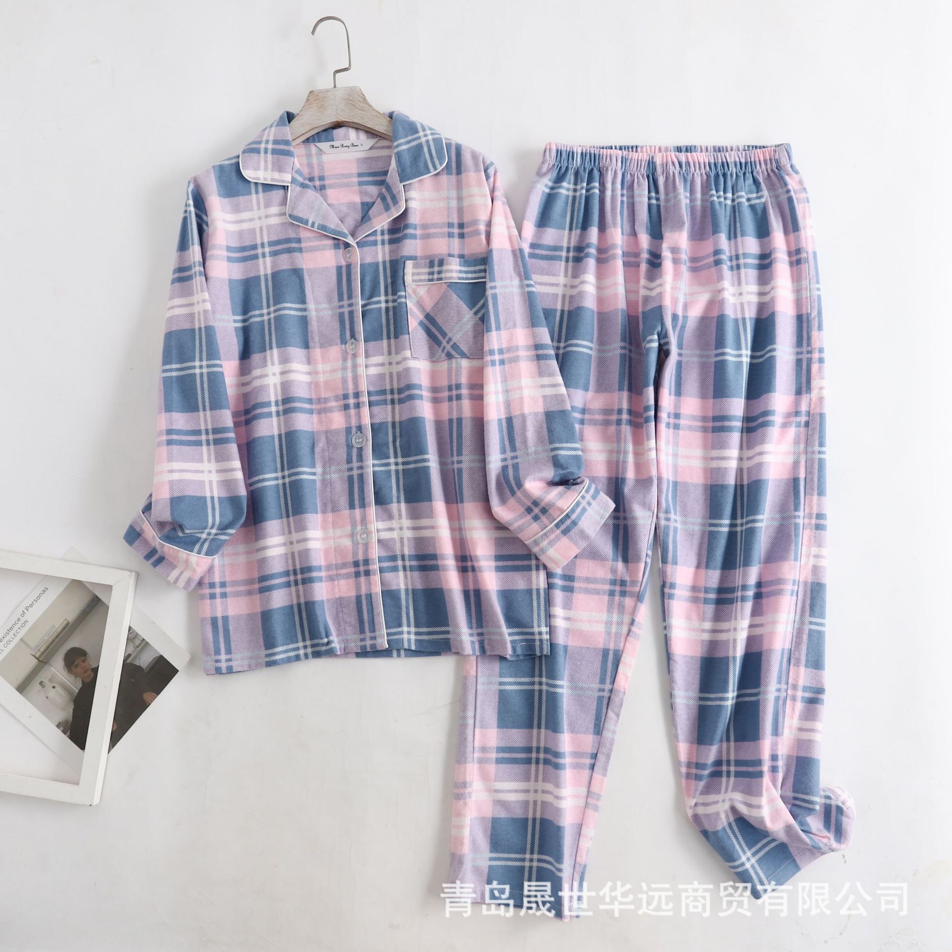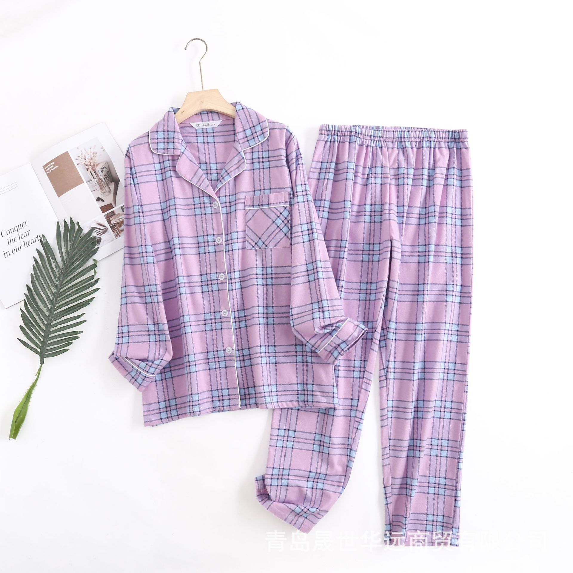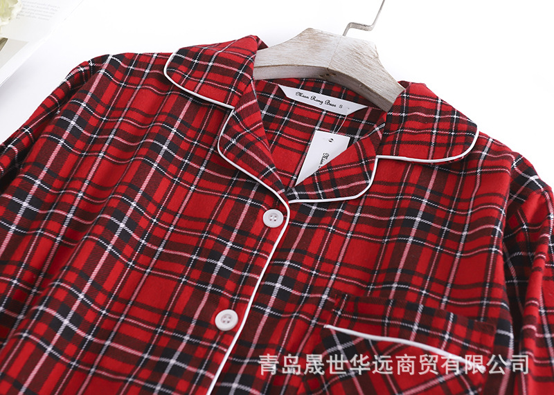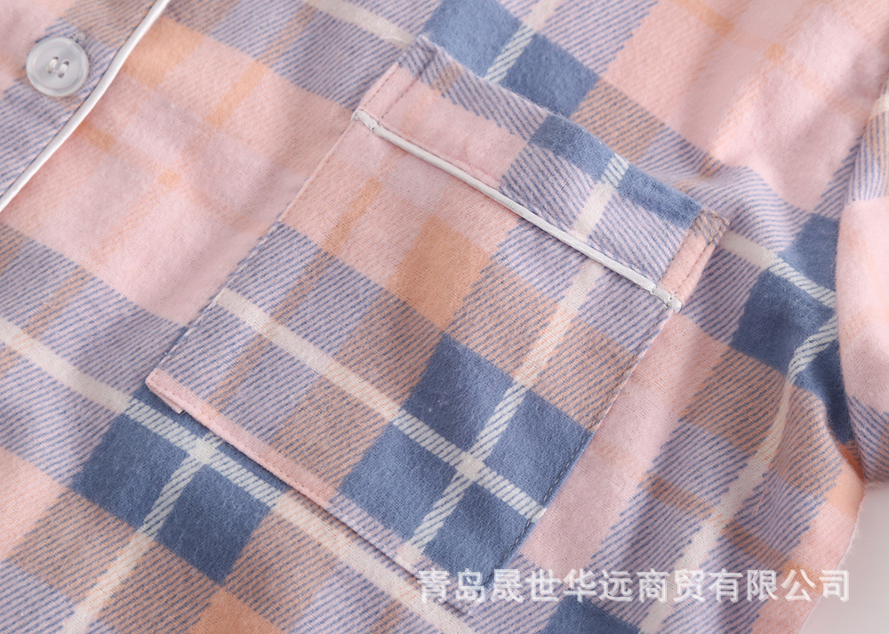순면 플란넬 샌딩 여성 잠옷 세트 지방 플러스 사이즈 간단한 느슨한 봄 가을 겨울 유럽과 미국 격자 무늬 긴 소매 바지스토어 가기