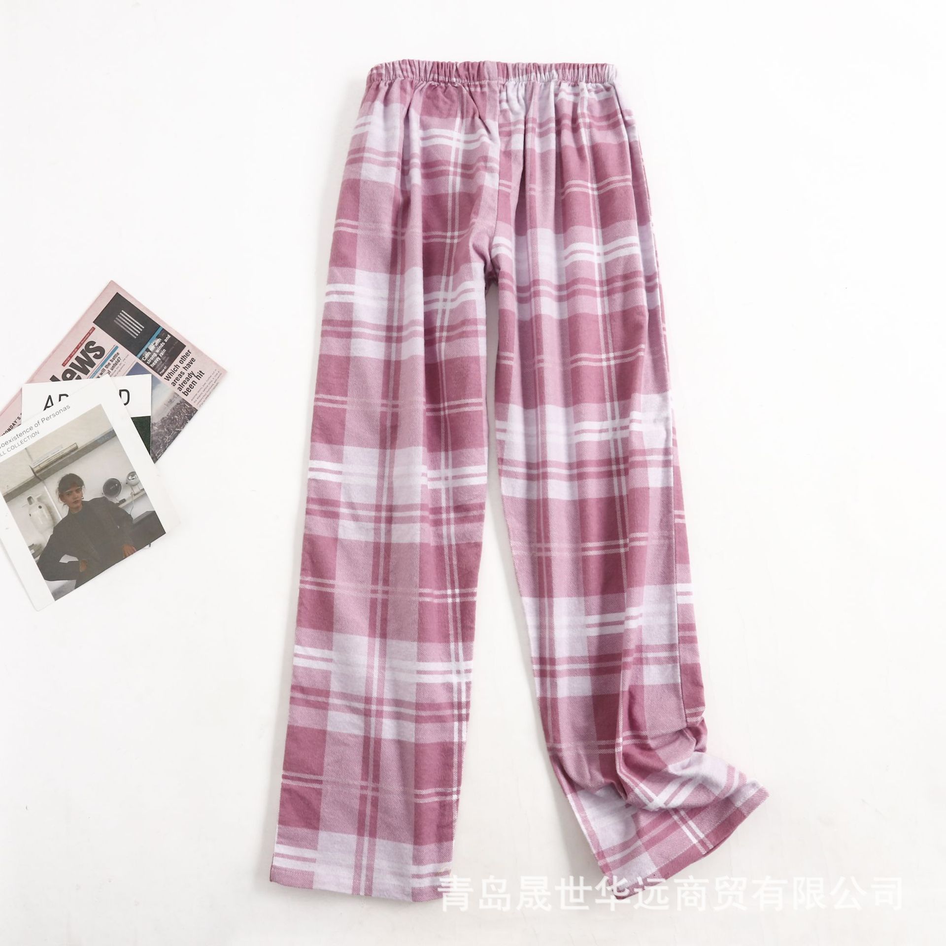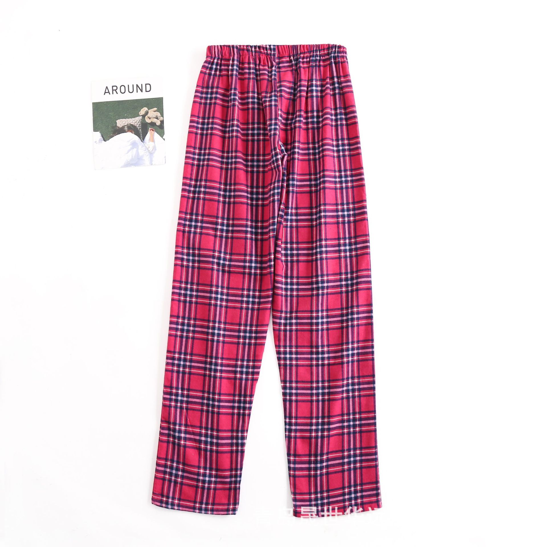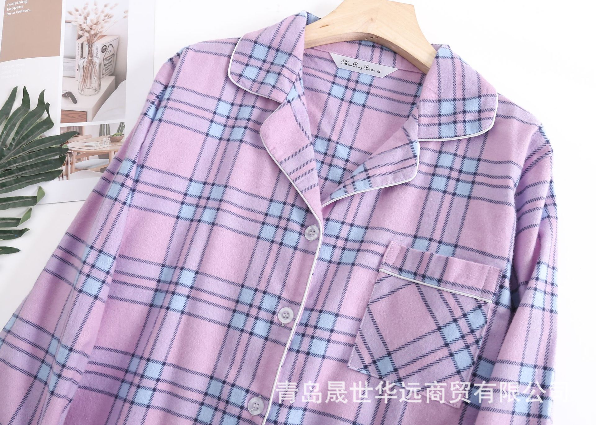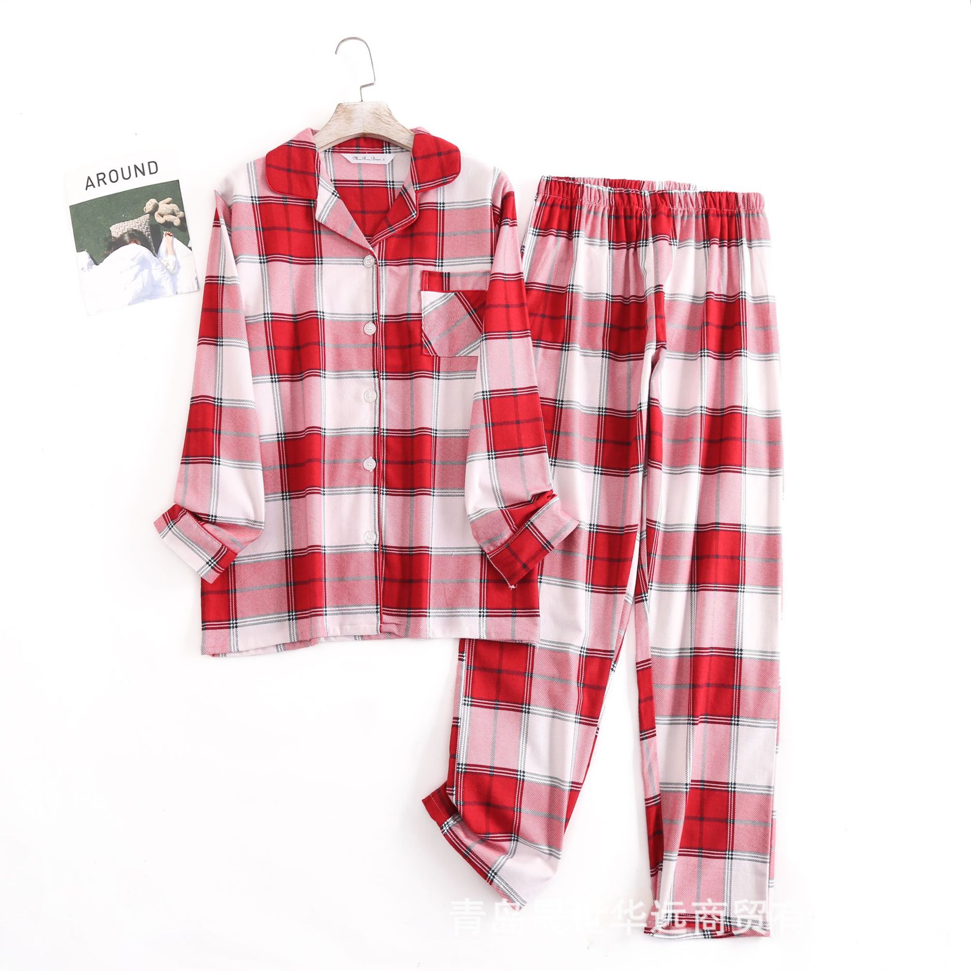 순면 플란넬 샌딩 여성 잠옷 세트 지방 플러스 사이즈 간단한 느슨한 봄 가을 겨울 유럽과 미국 격자 무늬 긴 소매 바지스토어 가기