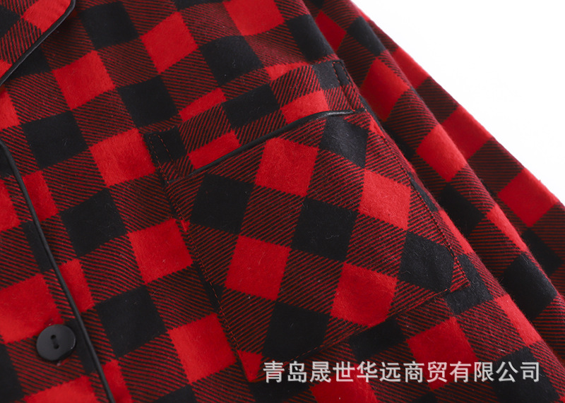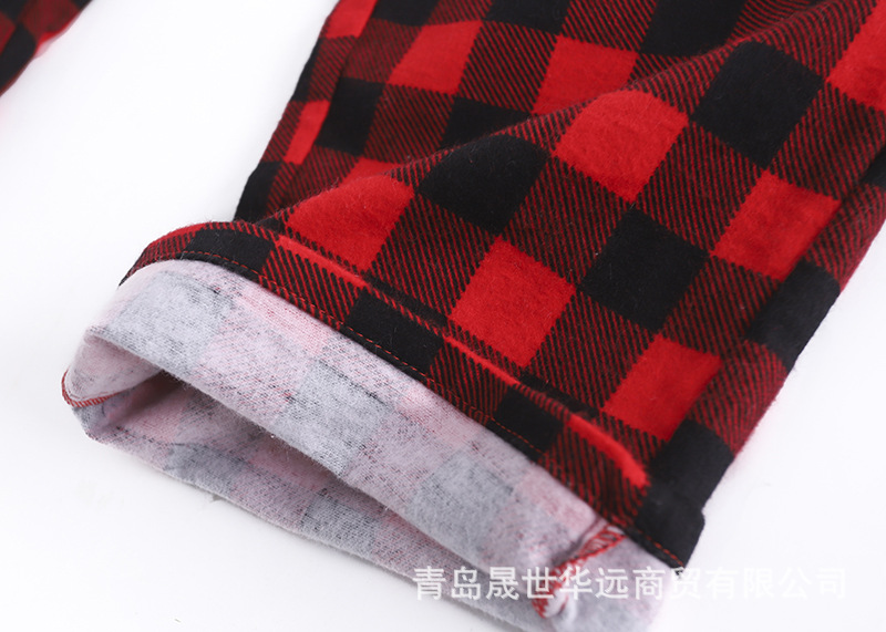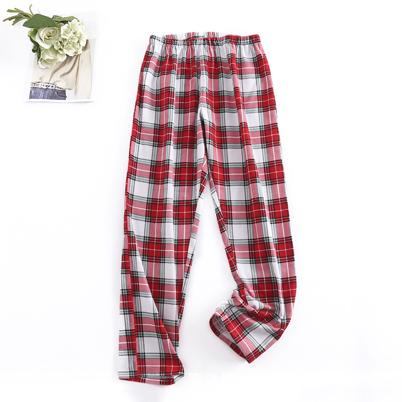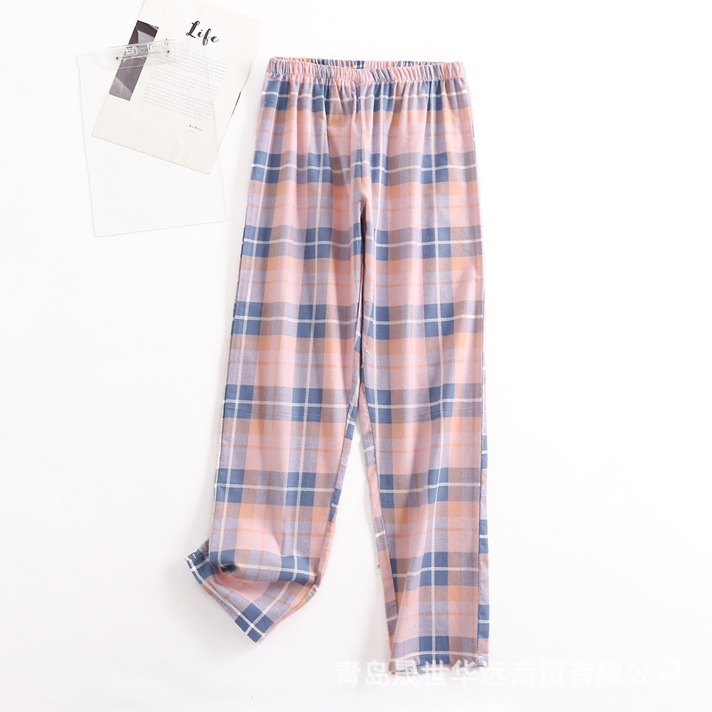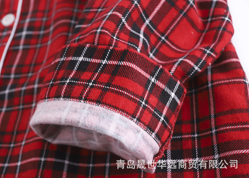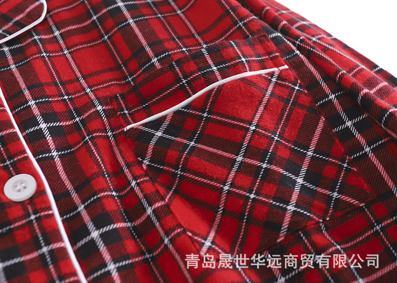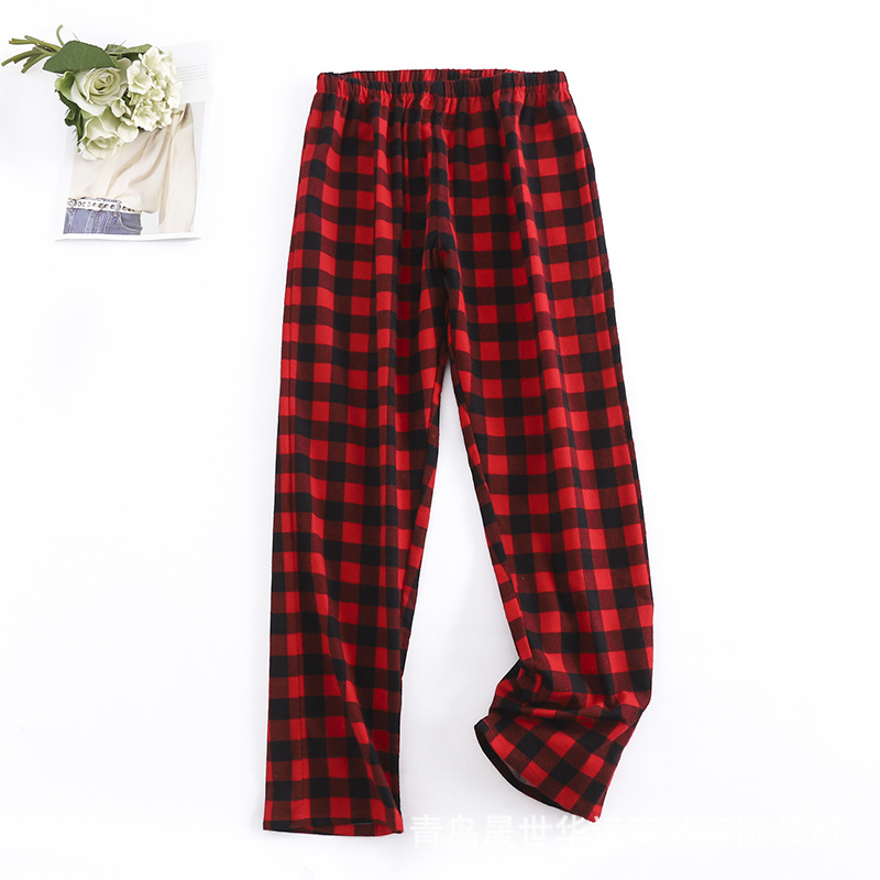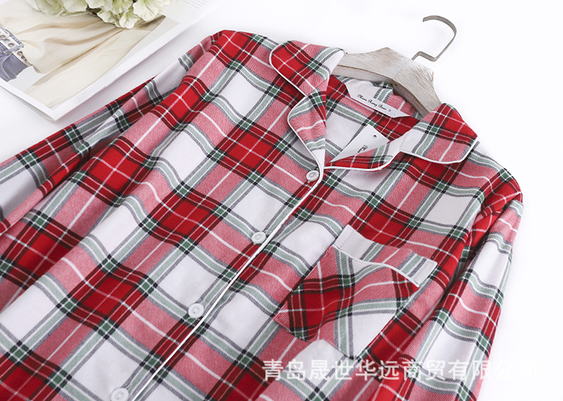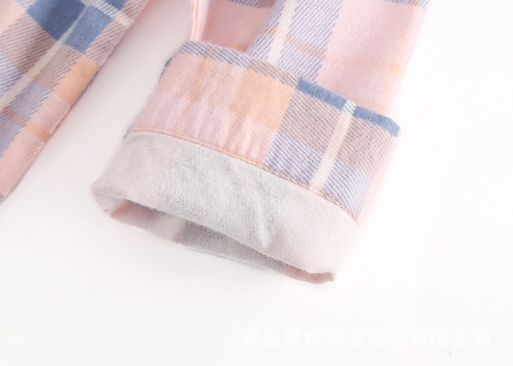 순면 플란넬 샌딩 여성 잠옷 세트 지방 플러스 사이즈 간단한 느슨한 봄 가을 겨울 유럽과 미국 격자 무늬 긴 소매 바지