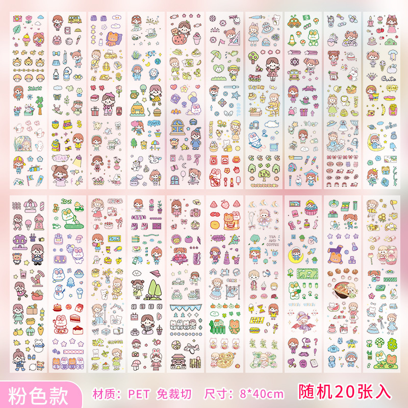 PET 긴 스티커 귀여운 방수 손 계정 장식 재료 학생 손 계정 in 바람 손 계정 스티커 패키지 도매스토어 가기